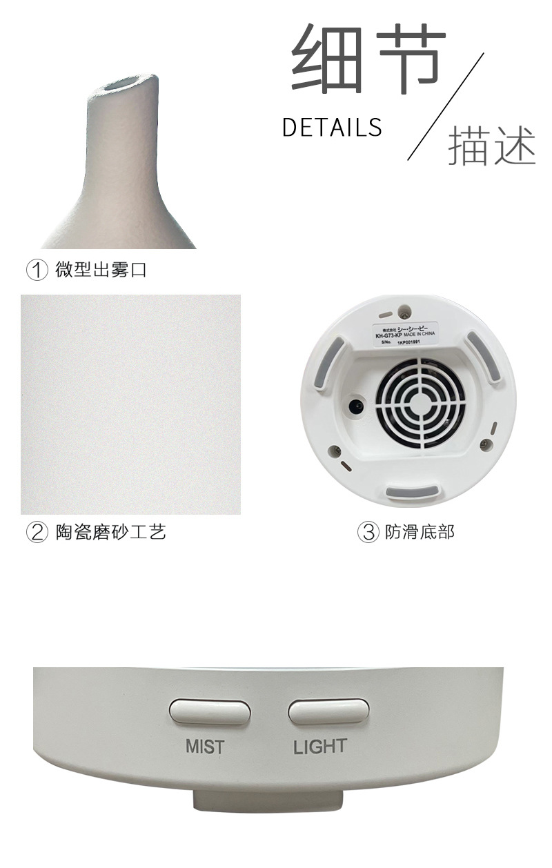 陶瓷加湿器小夜灯氛围圆柱长嘴家用加湿器桌面卧室家用空气加湿器 English | 投诉