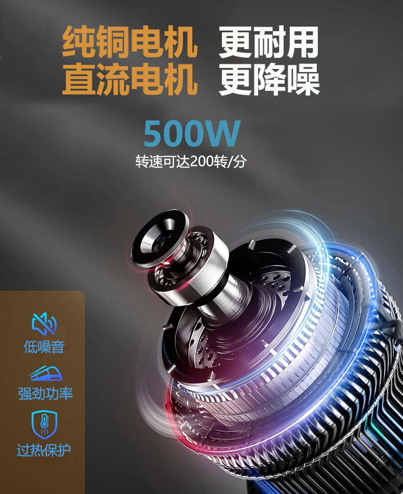 货号: VSQ-S 产地: 中山 是否进口: 否 产品上市时间: 2022年 规格: 250-500W 加工定制: 是 加印LOGO: 可以 价格段: 100-200元 品牌: De Maria 适用送礼场合: 所有地方 主要下游平台: ebay,亚马逊 主要销售地区: 南美,北美 有可授权的自有品牌: 是 是否跨境出口专供货源: 是 风格: 现代简约 是否有专利: 是 专利类型: 外观设计专利 专利号: ZL201930222142.6 功能: 电动,自动,多功能 材质: ABS 重量: 0.5 kg/个
