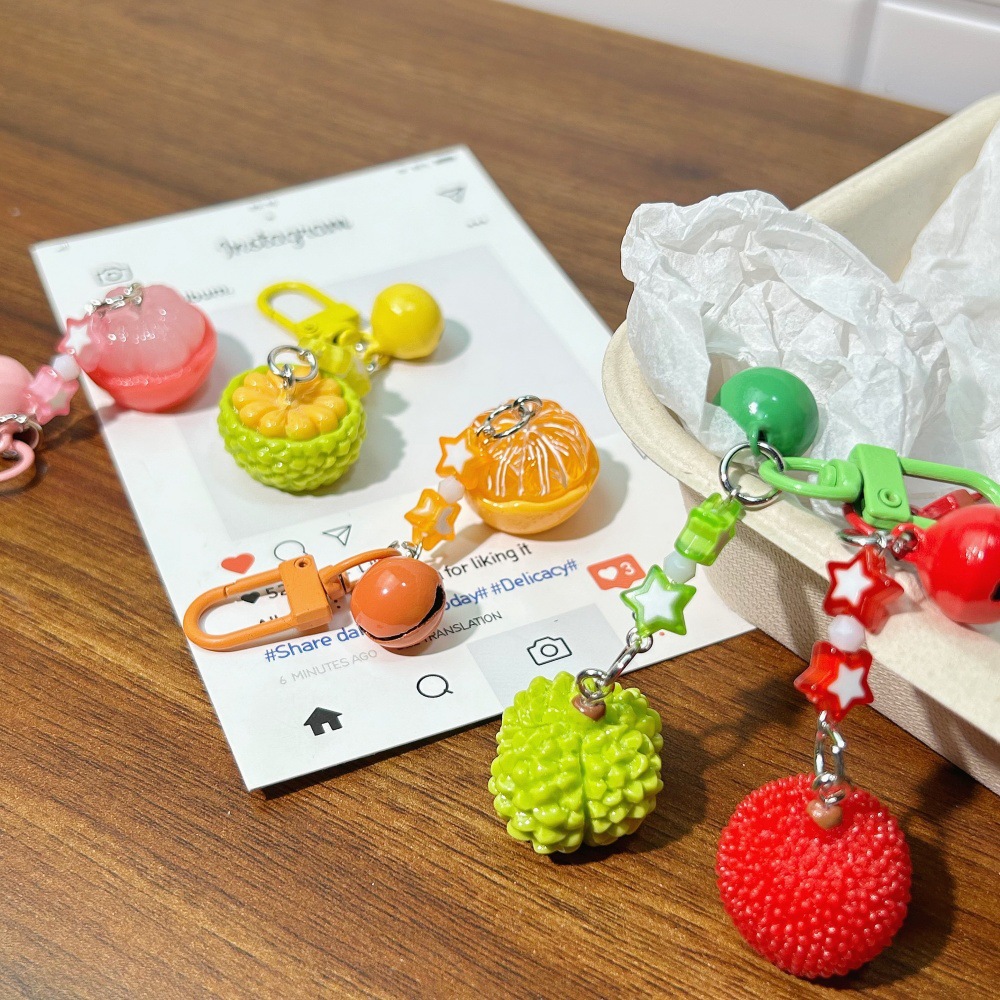 门铃L76立体清新水果手机链铃铛食玩学生包包挂件橘子榴莲菠萝蜜 English | 投诉