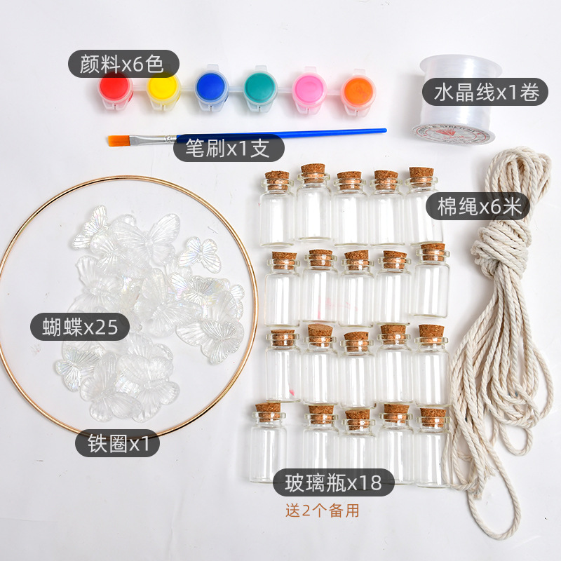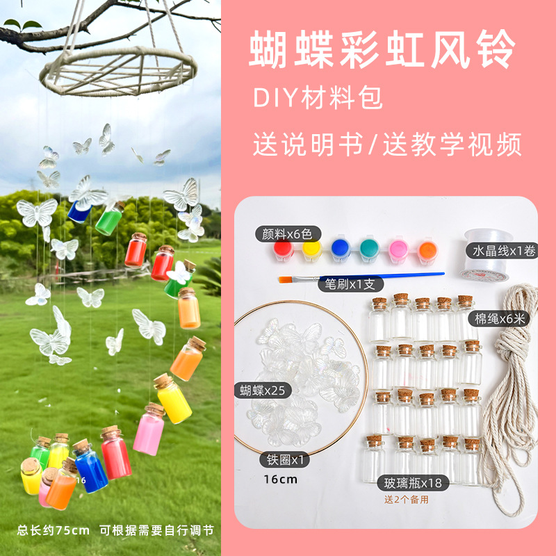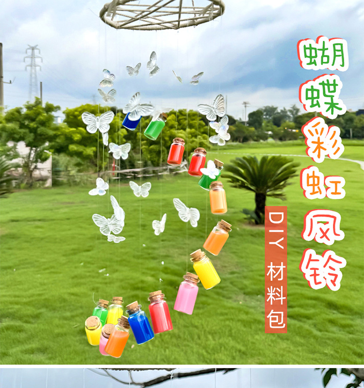 diy蝴蝶风铃材料包彩虹玻璃瓶挂件炫彩梦幻风铃挂创意送同学礼品