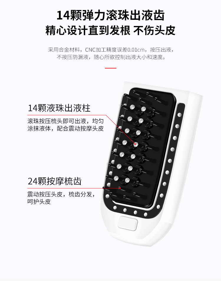 新款走珠金属给药器头部护理头皮上药器家用头疗迷你导液按摩梳
