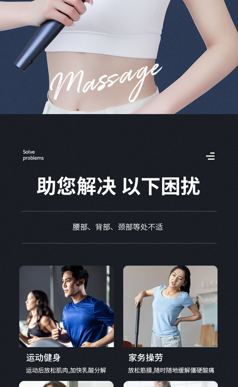 Homeza跨境爆款热销筋膜枪深层冲击肌肉按摩锤打肩背放松按摩棒 English | 投诉