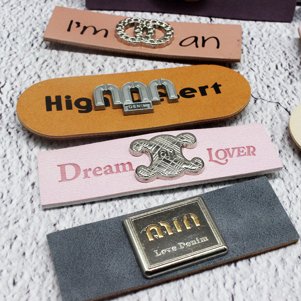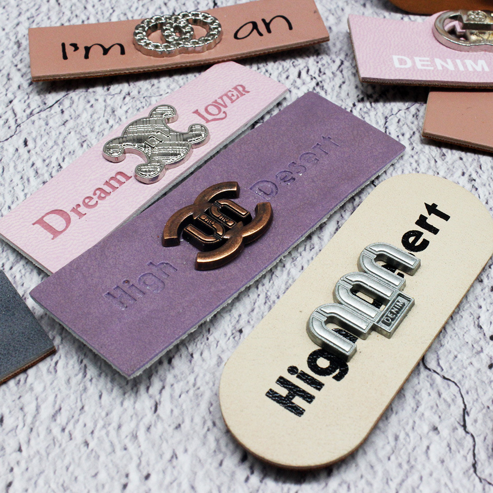 女装五金皮标潮牌合金装饰标牛仔裤电压PU皮牌压花印花商标