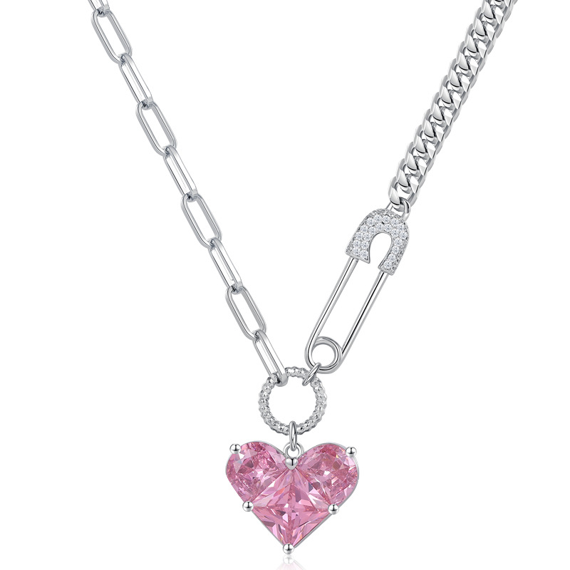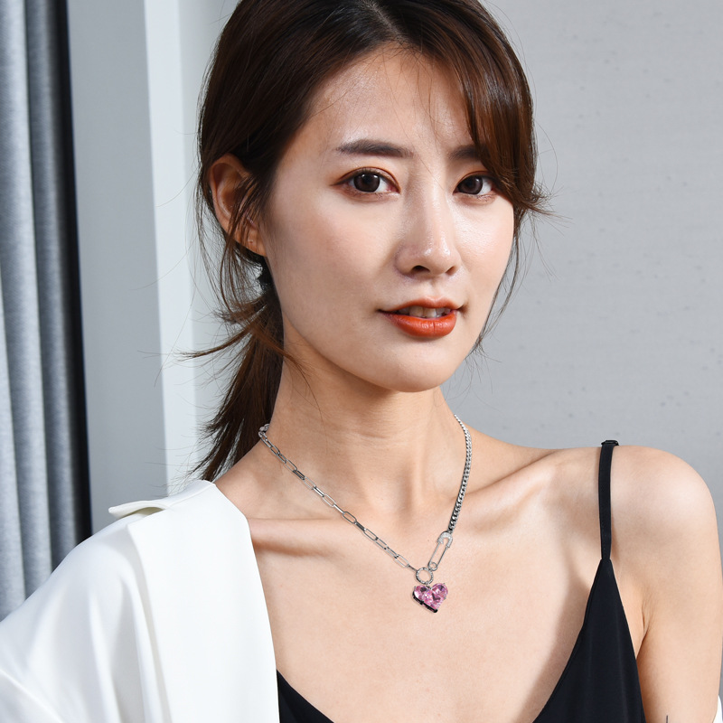 韩版心形吊坠项链女芭比粉钻高级感配饰设计感扣针甜酷百搭锁骨链