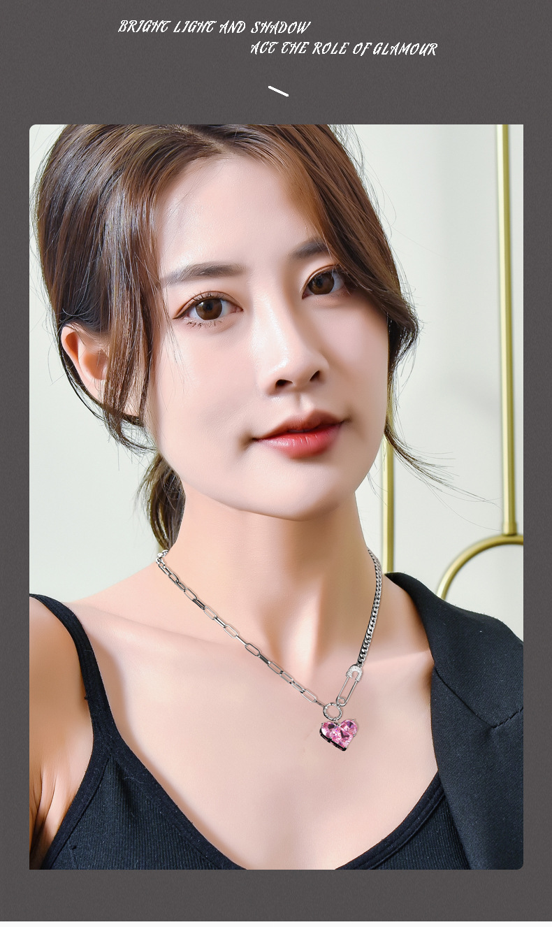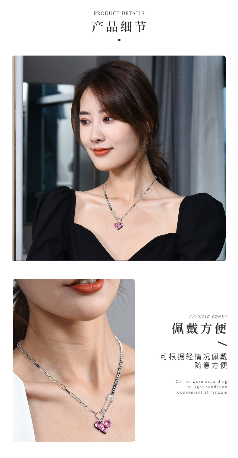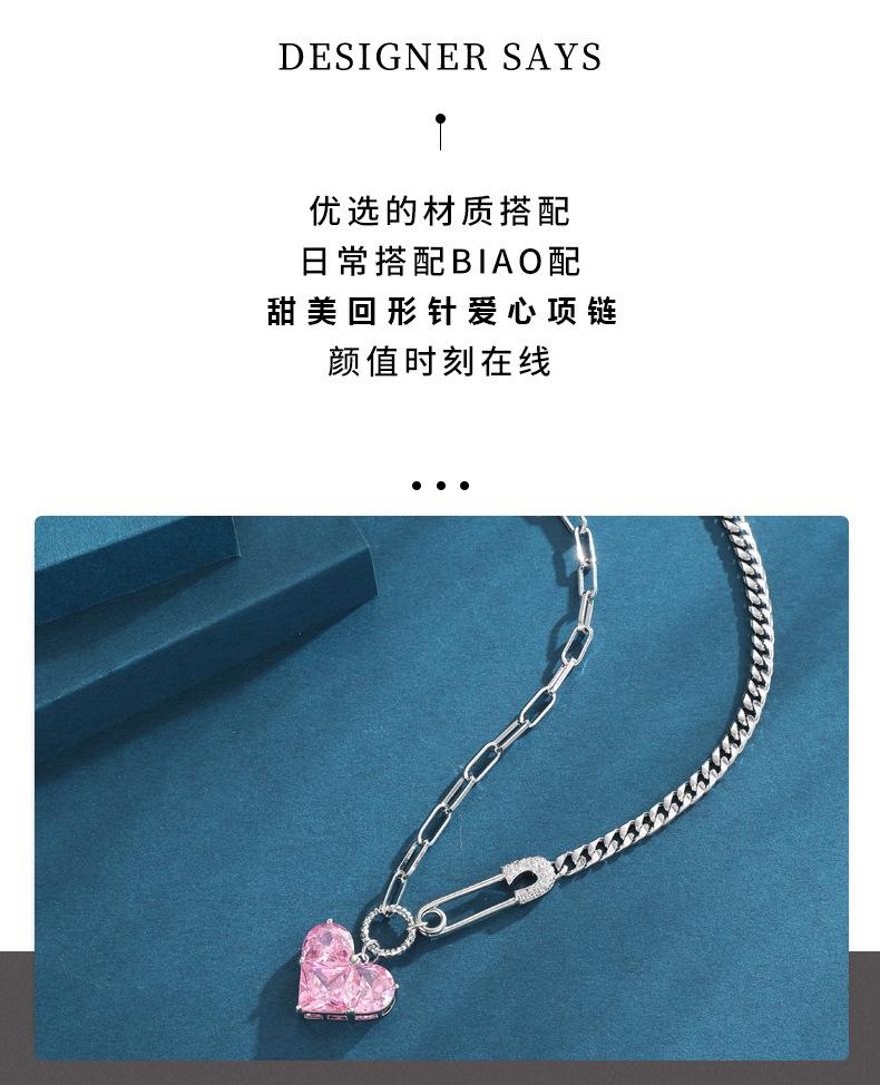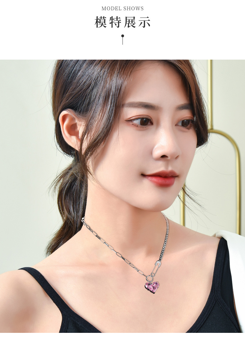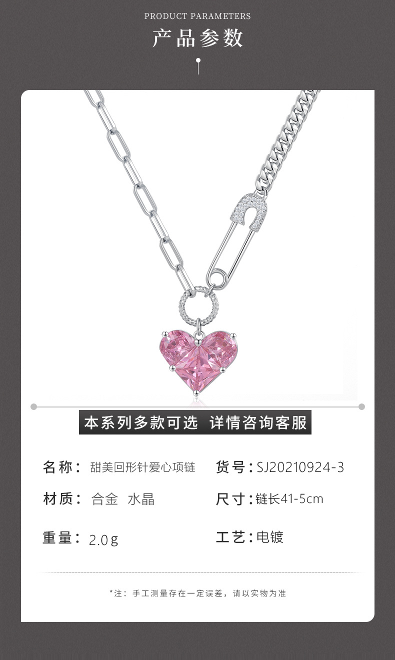 韩版心形吊坠项链女芭比粉钻高级感配饰设计感扣针甜酷百搭锁骨链 投诉