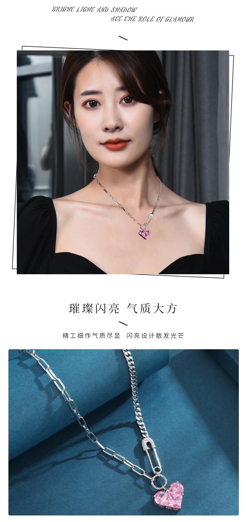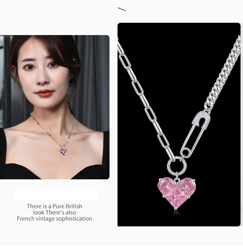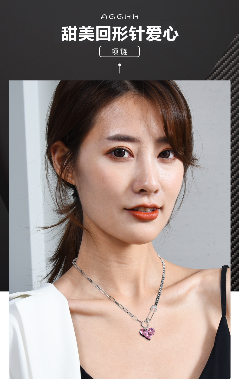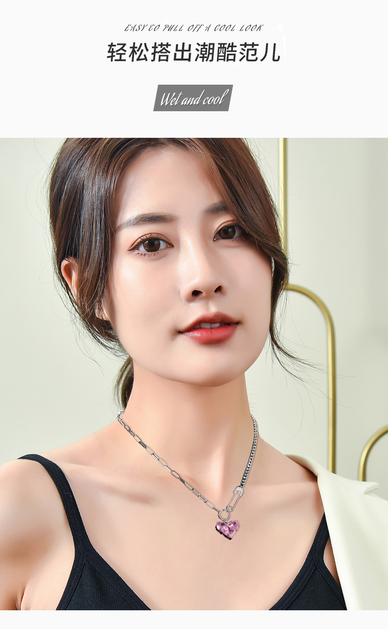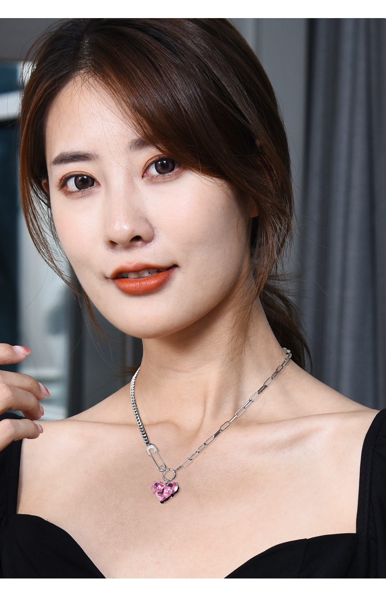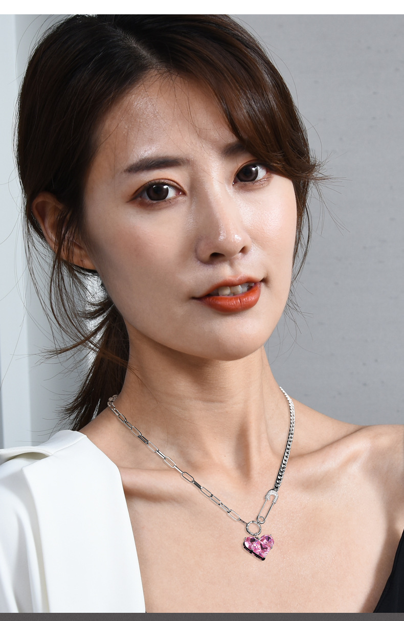 韩版心形吊坠项链女芭比粉钻高级感配饰设计感扣针甜酷百搭锁骨链 投诉