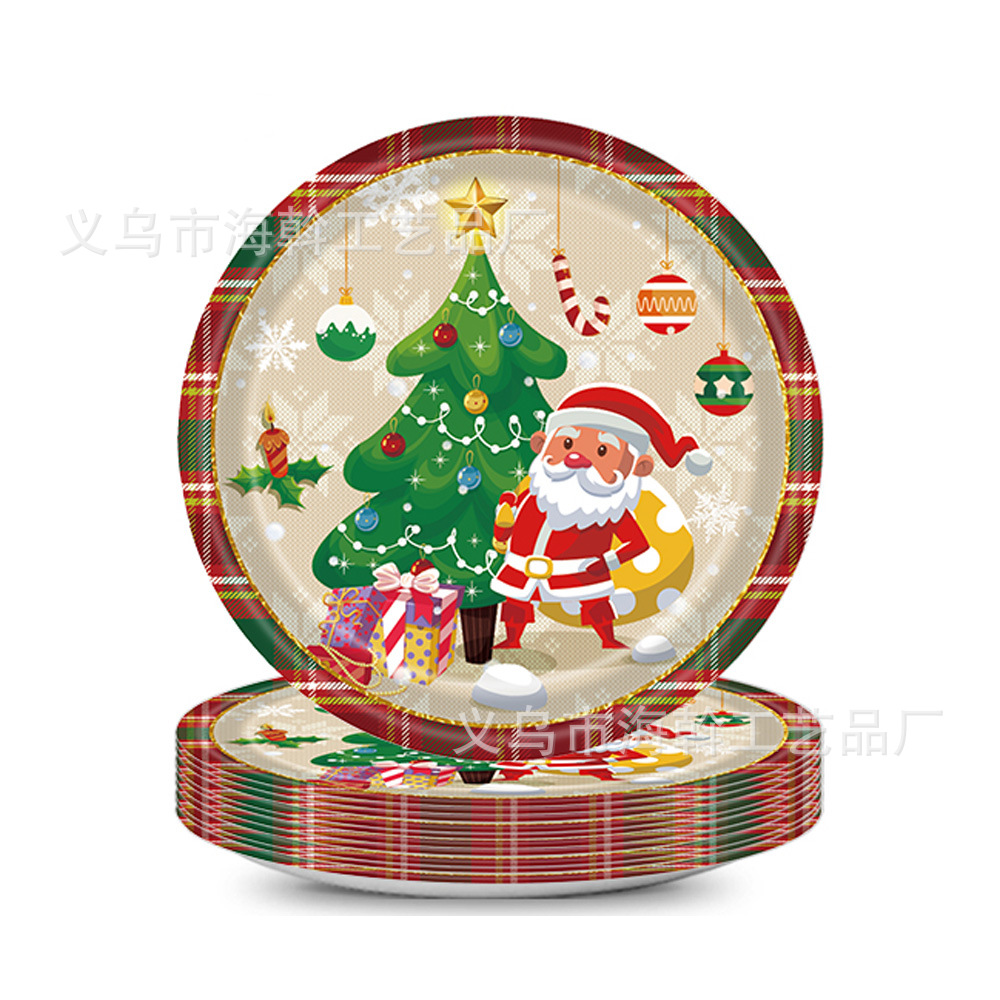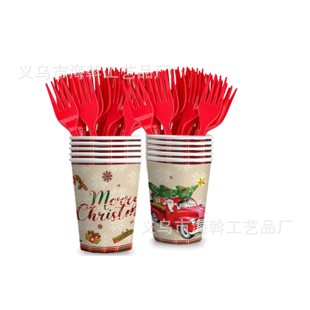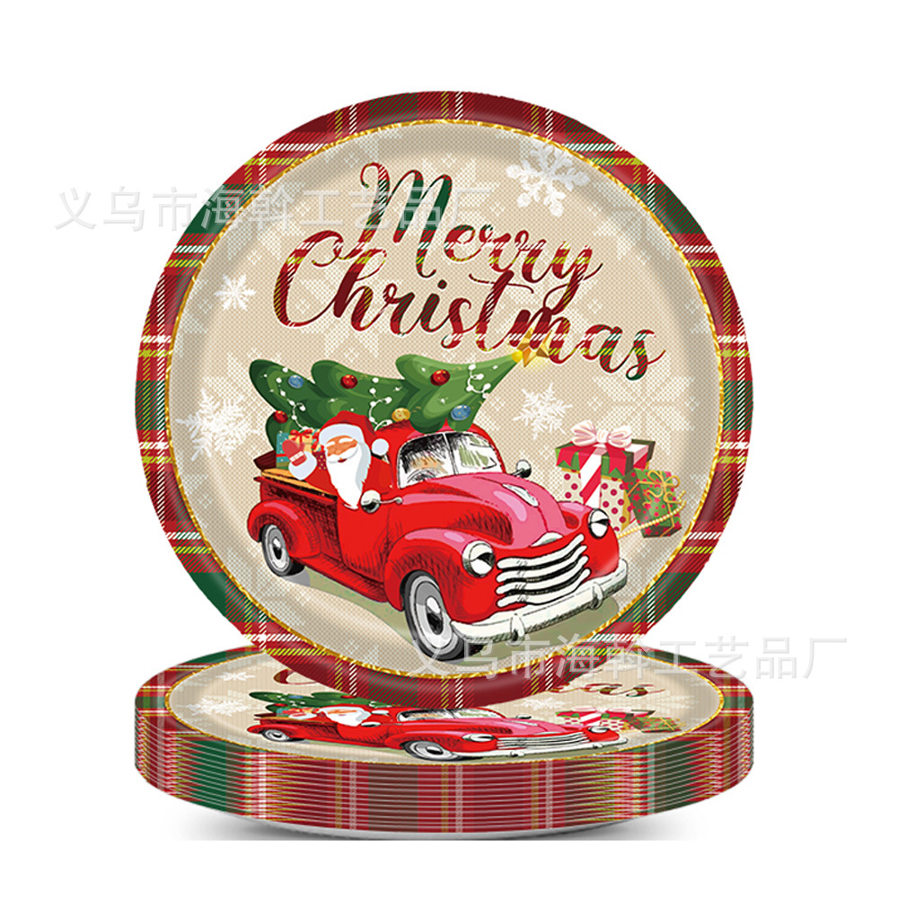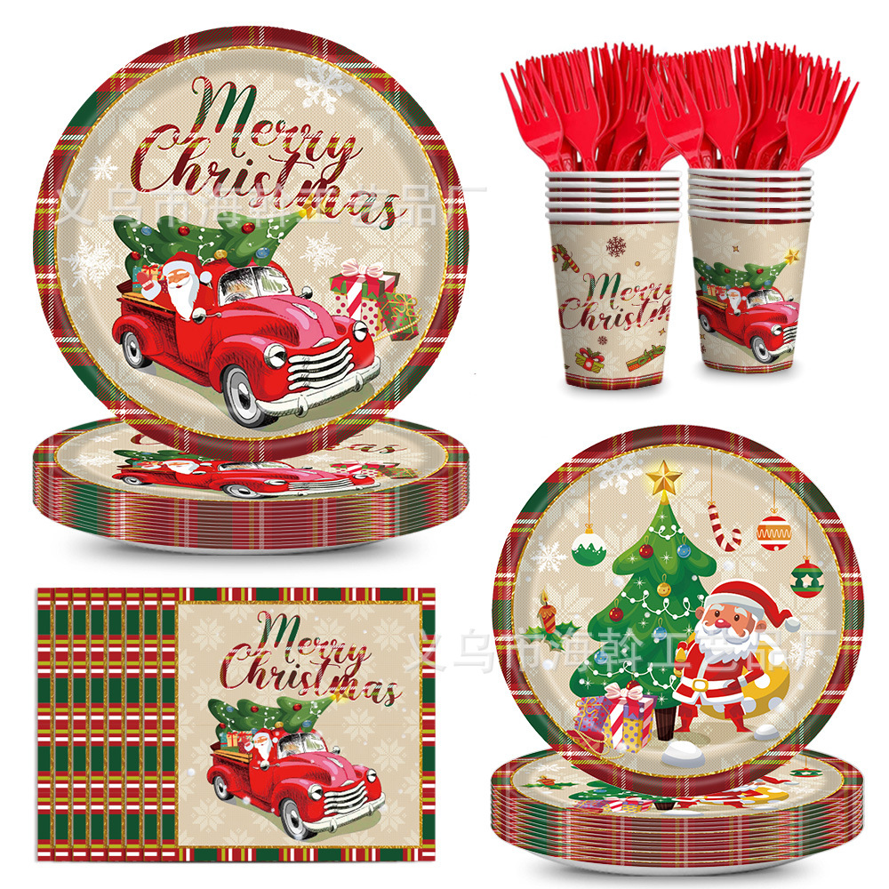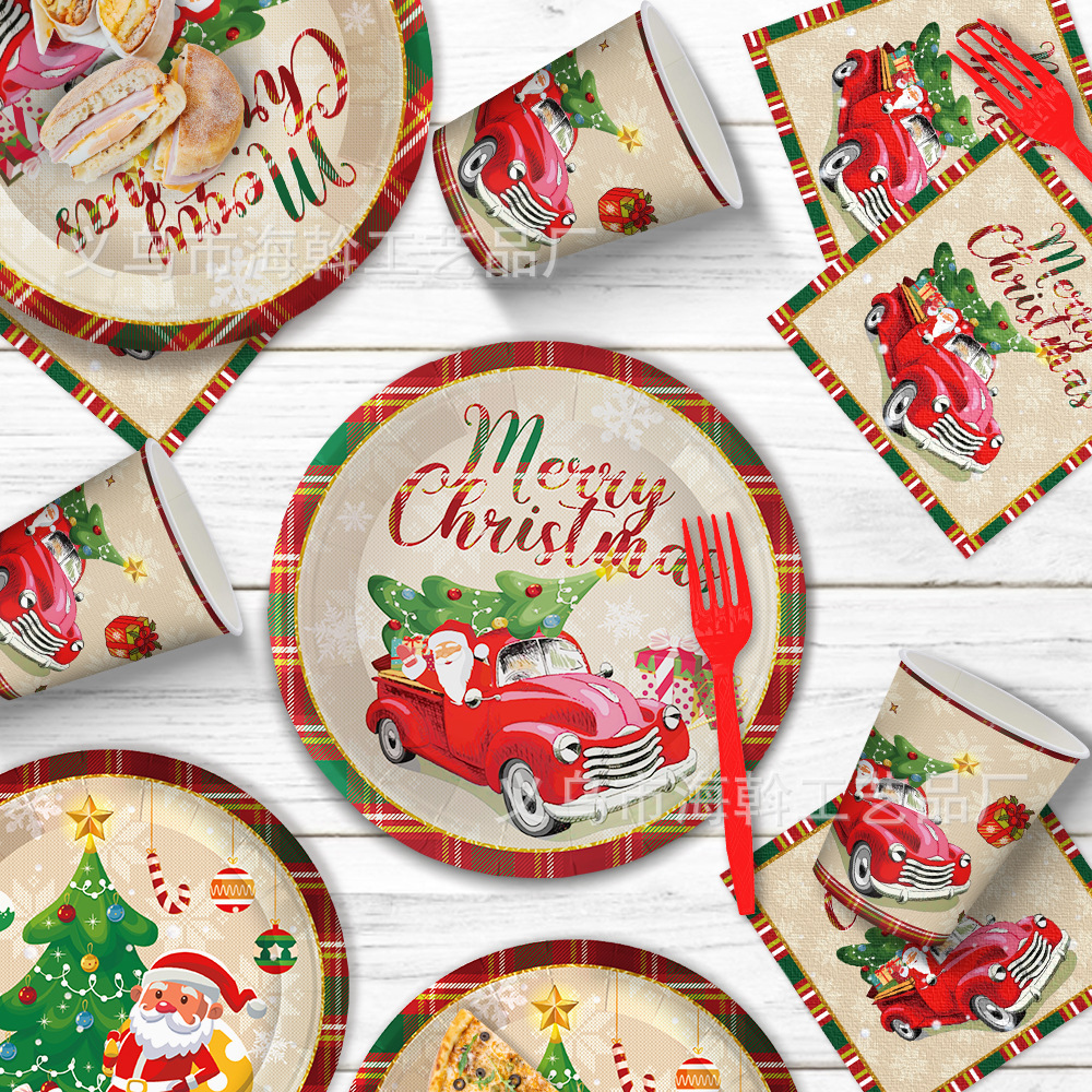 跨境新款红色圣诞卡丁车主题派对装饰一次性纸盘纸巾餐具套装用品 投诉