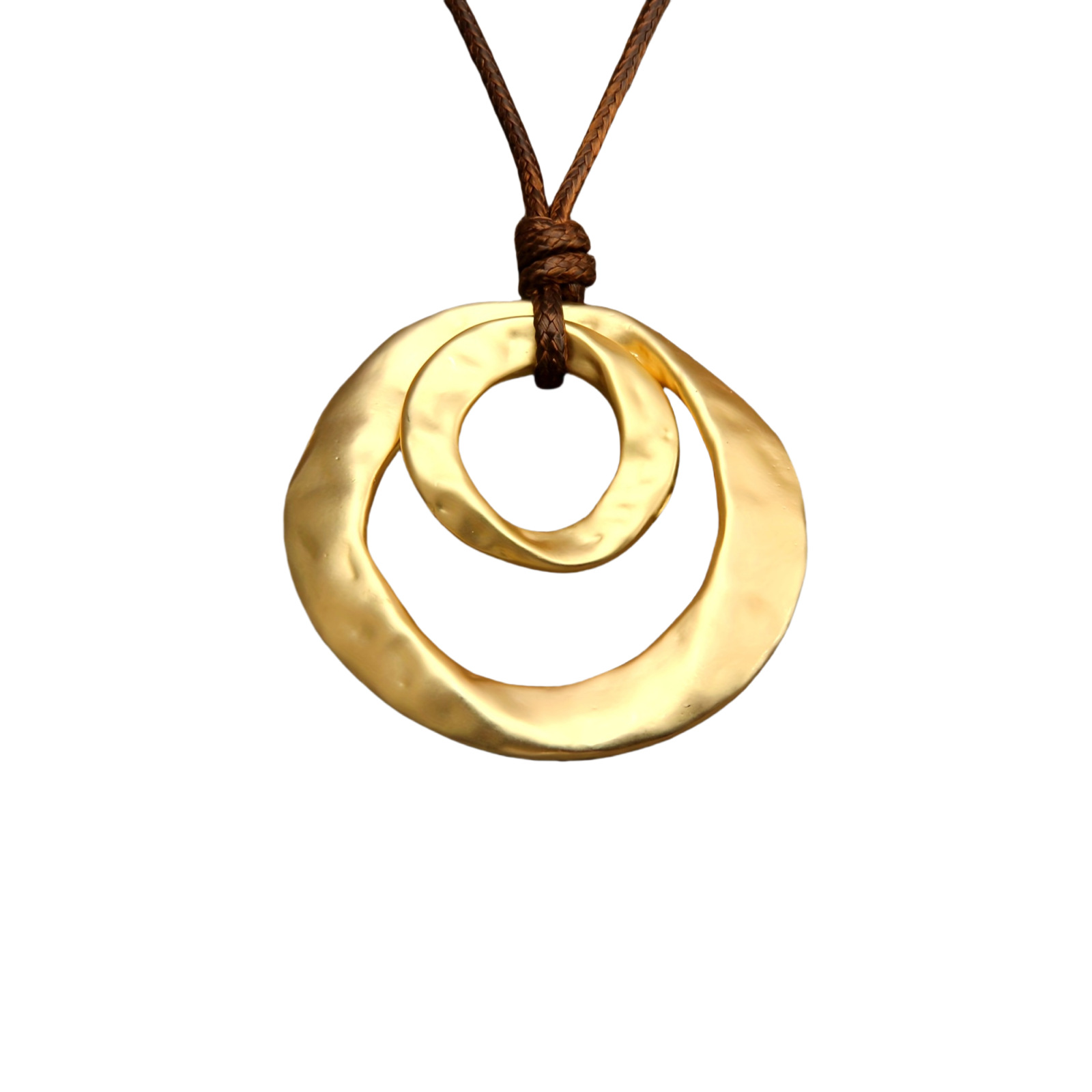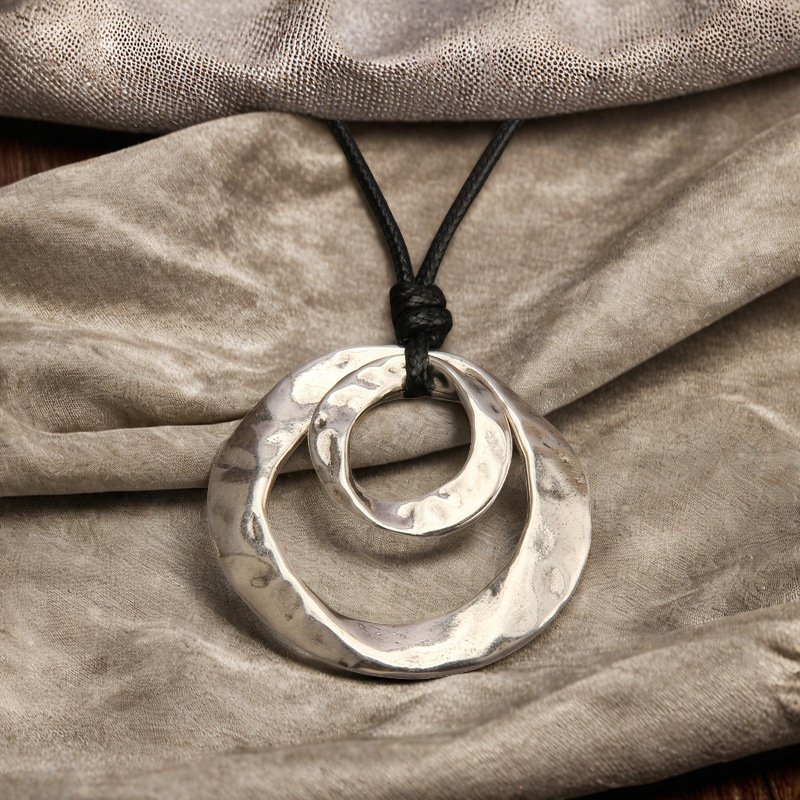 兴羊跨境热卖复古不规则双环吊坠项链时尚皮绳小众艺术风颈饰批发