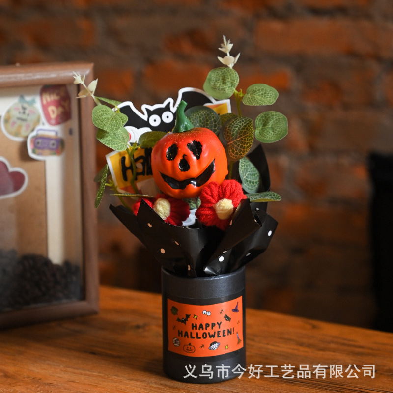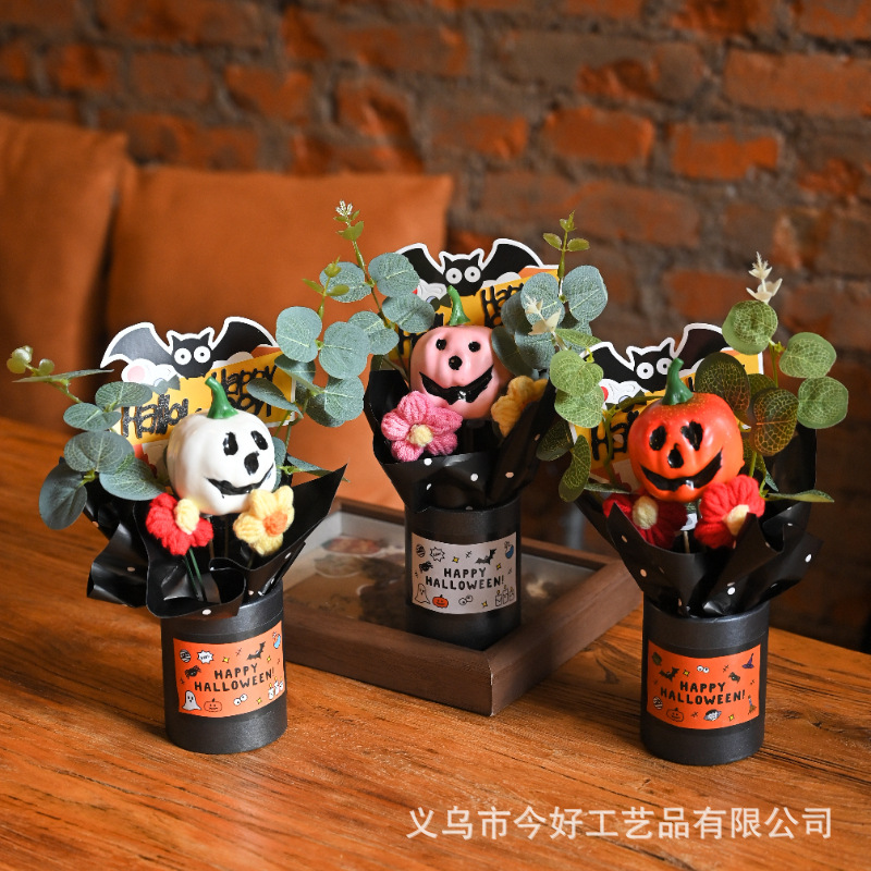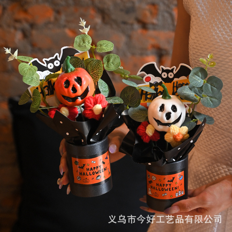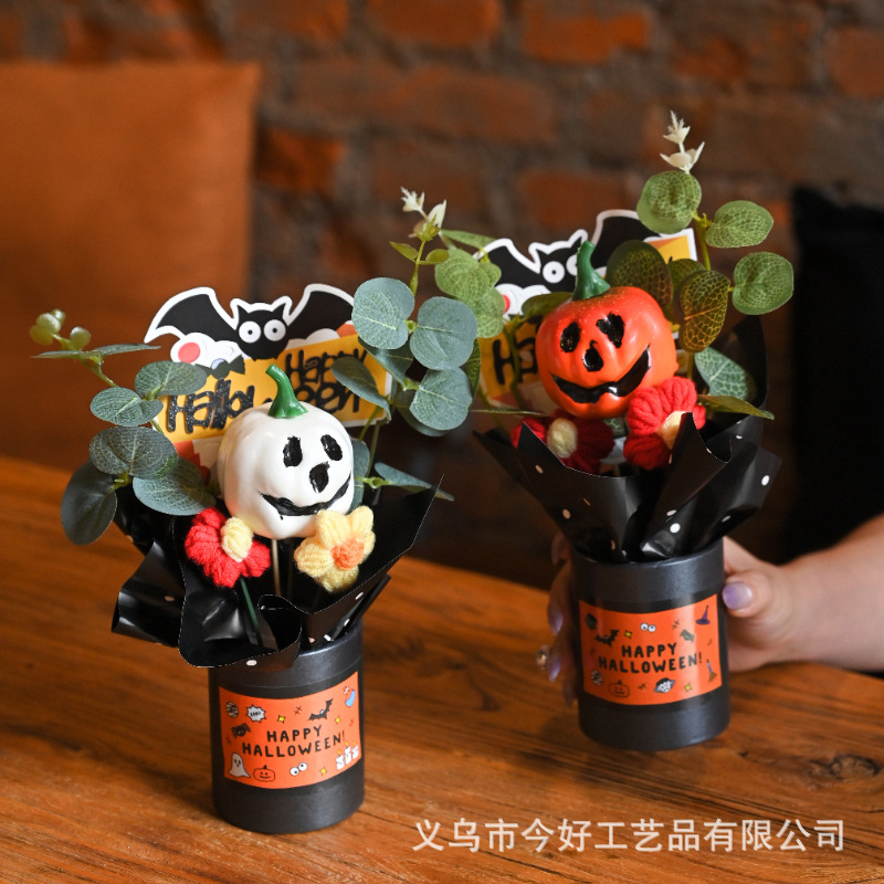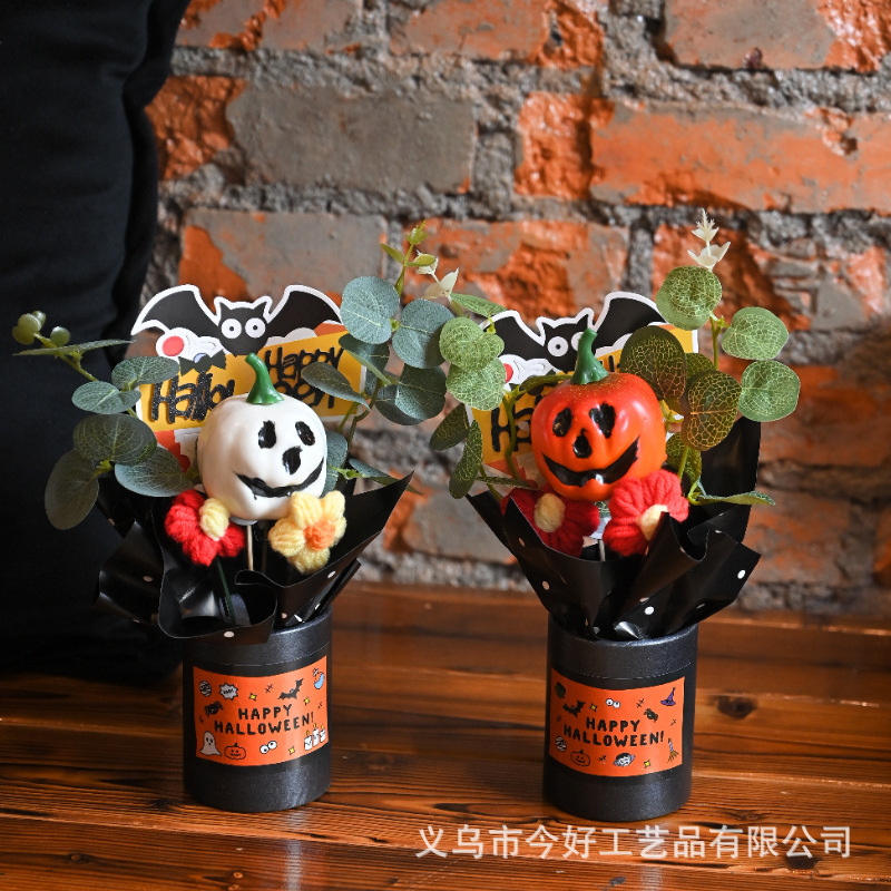 跨境新品1件迷你万圣节南瓜装饰品,小型树脂幽灵南瓜,万圣节花