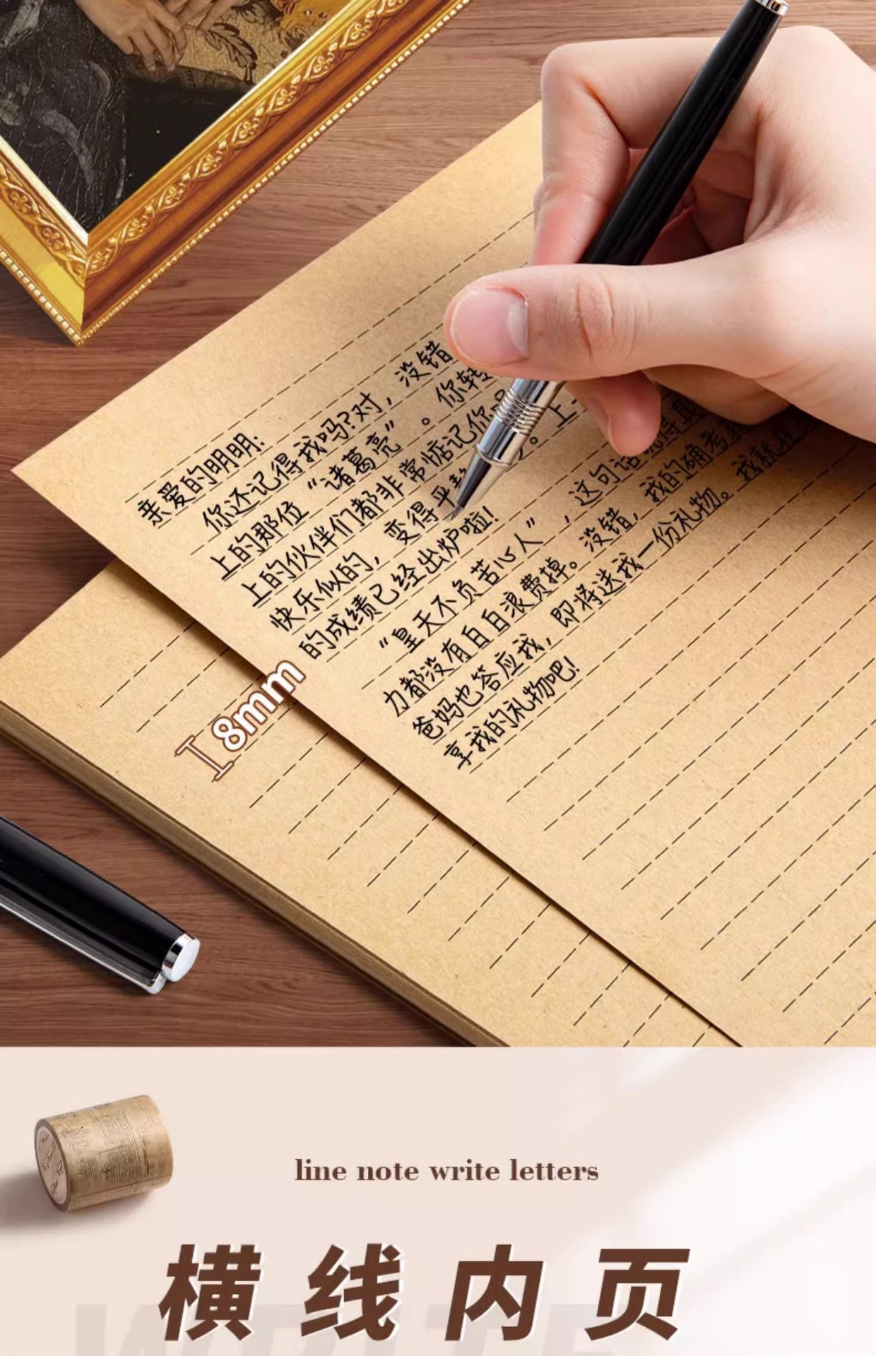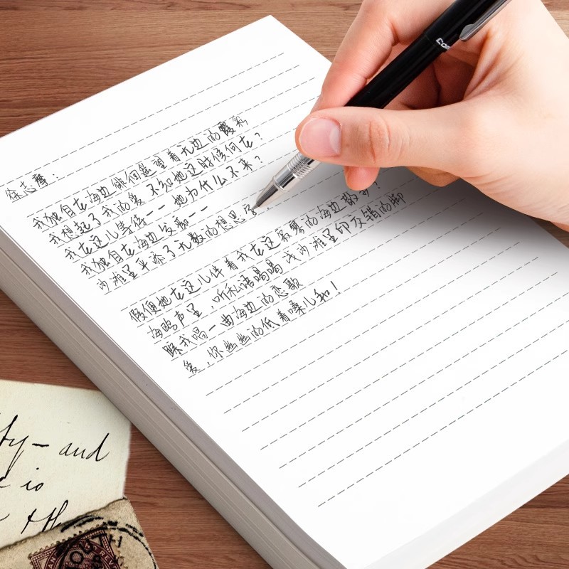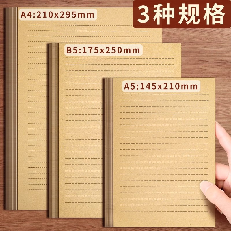 复古牛皮信纸草稿纸手写浪漫表白情书信笺信签纸单条横格横线a4古