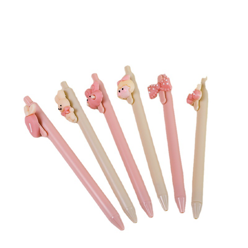 可爱兔子女孩按动笔女生高颜值立体卡通按动中性笔学生按压式水笔