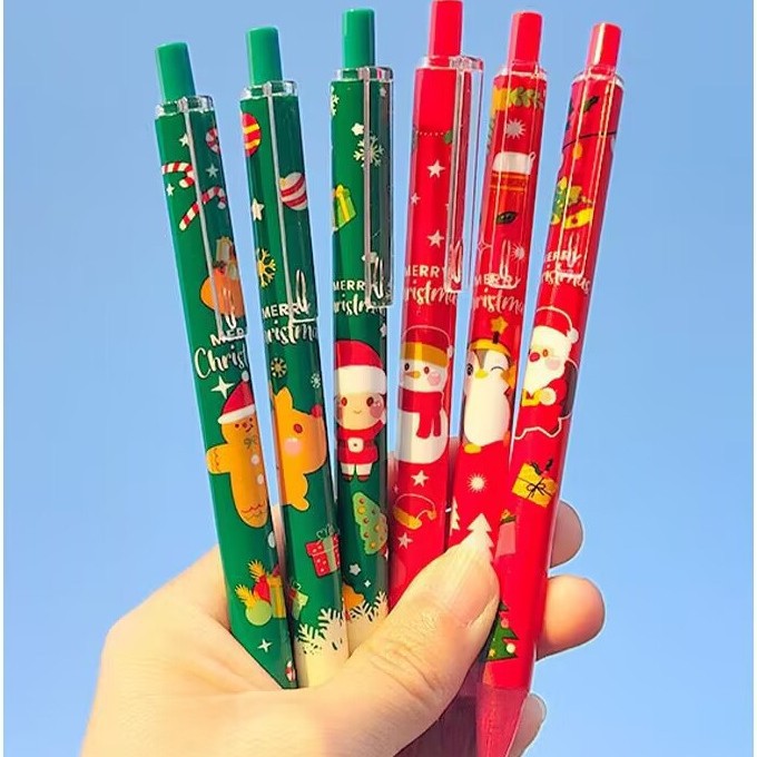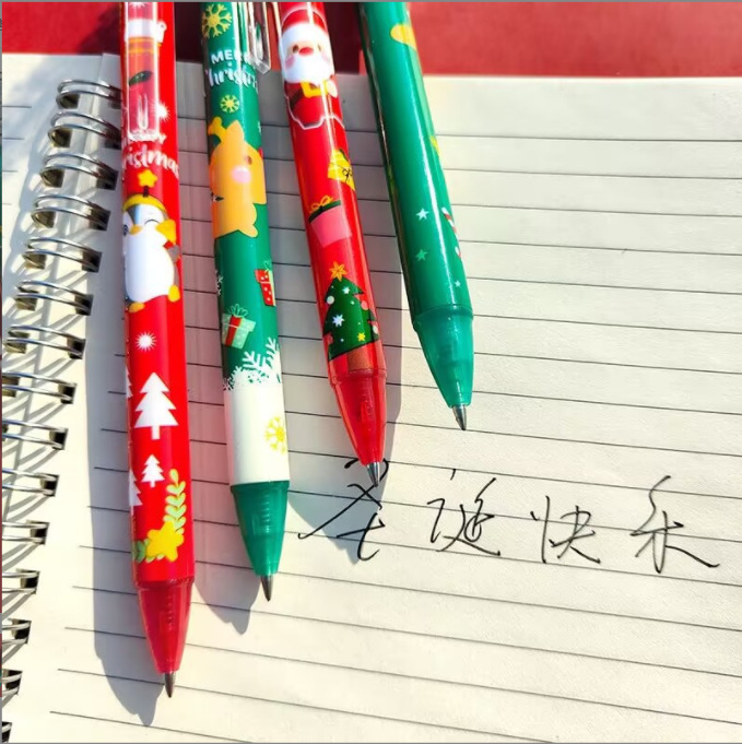 圣诞卡通按动中性笔学生考试办公学习按压签字笔黑水笔文具小礼品