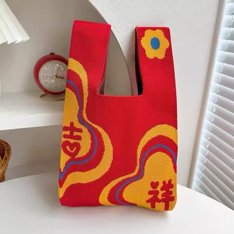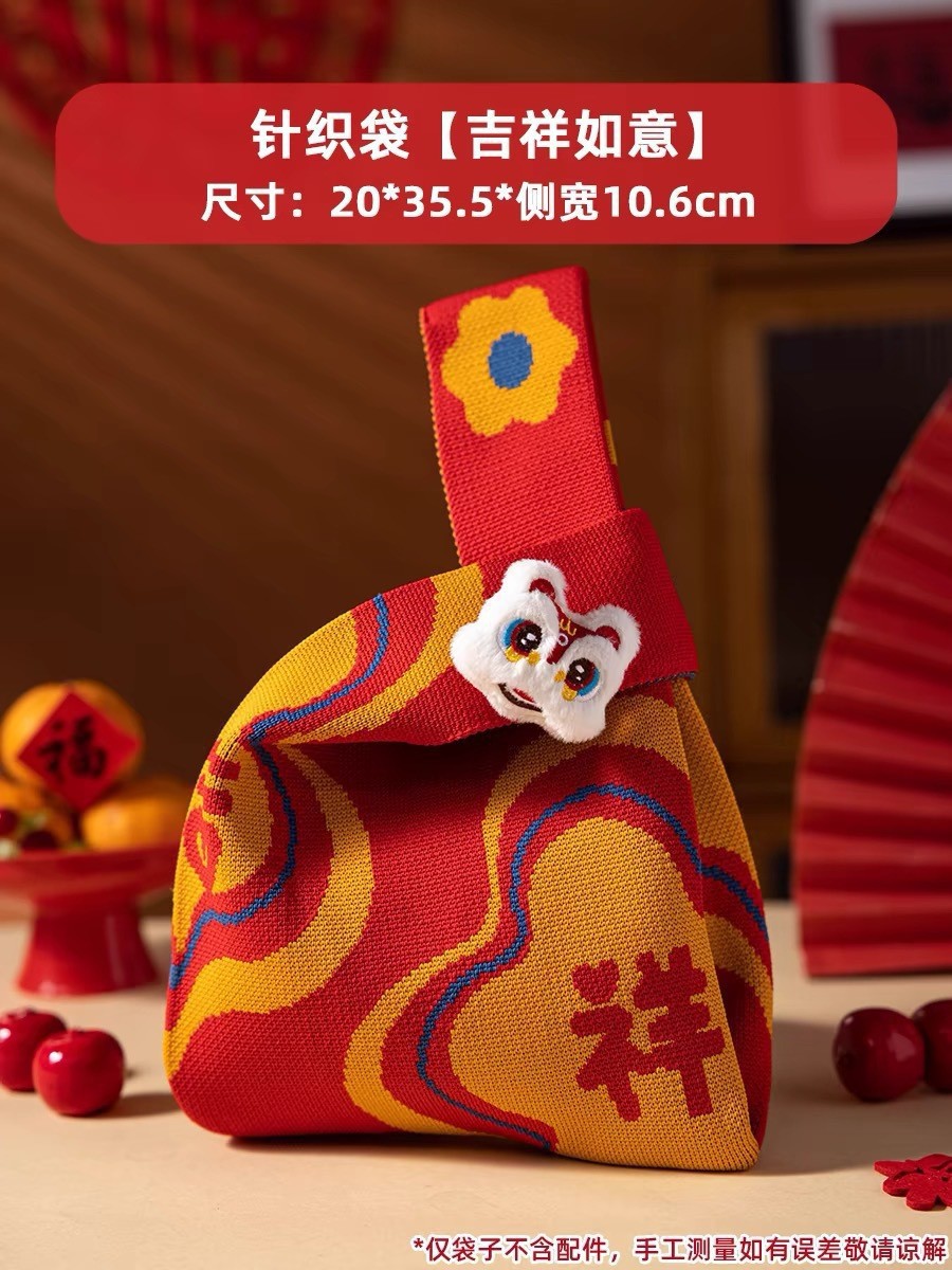 新年针织袋蛇年手提包大容量春节拜年礼物单肩包圣诞节礼品袋现货