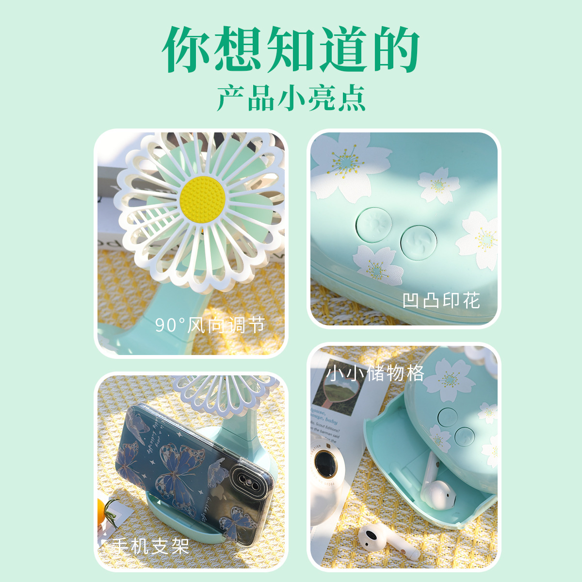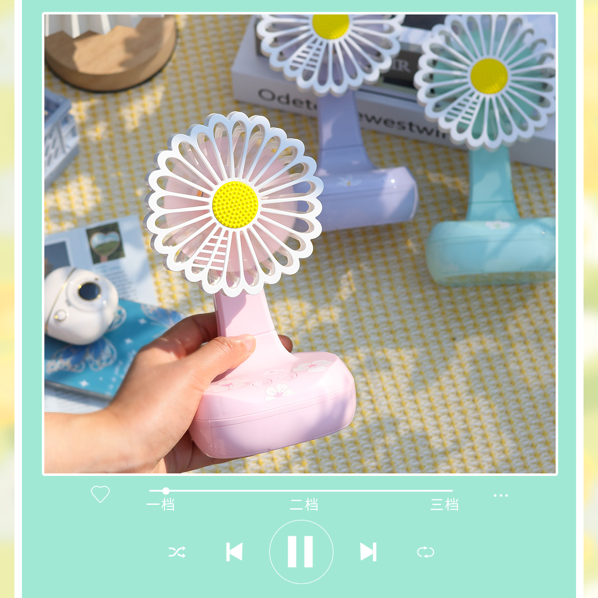 新款雏菊桌面风扇usb可充电台式迷你小风扇便携学生办公室带灯光 English | 投诉