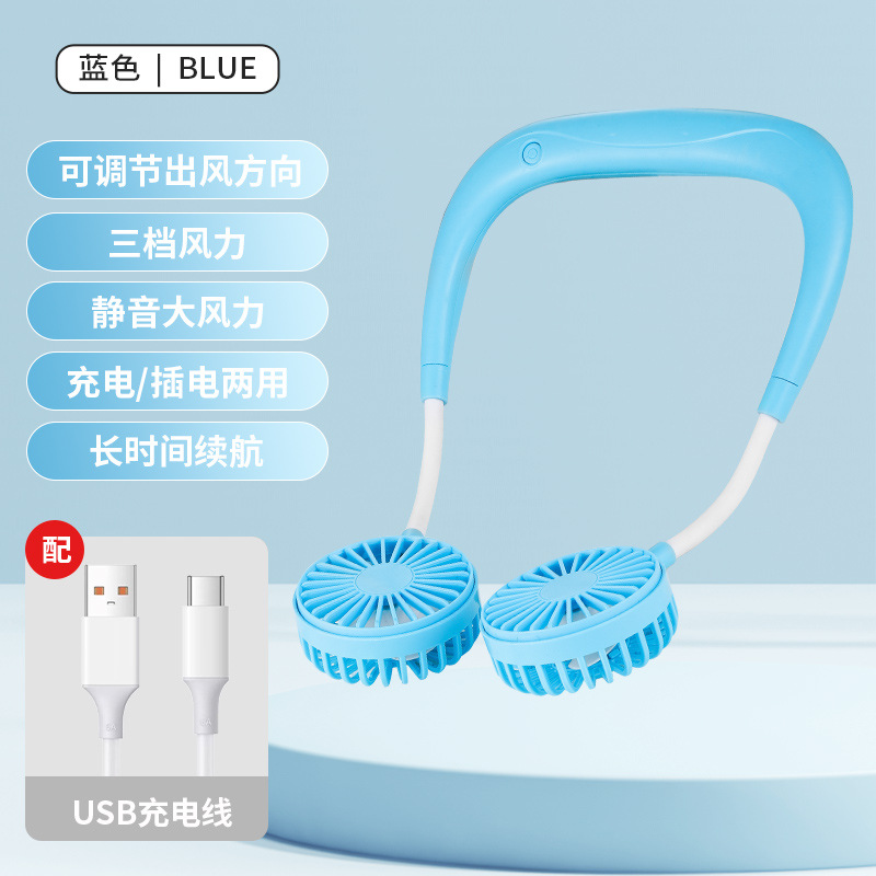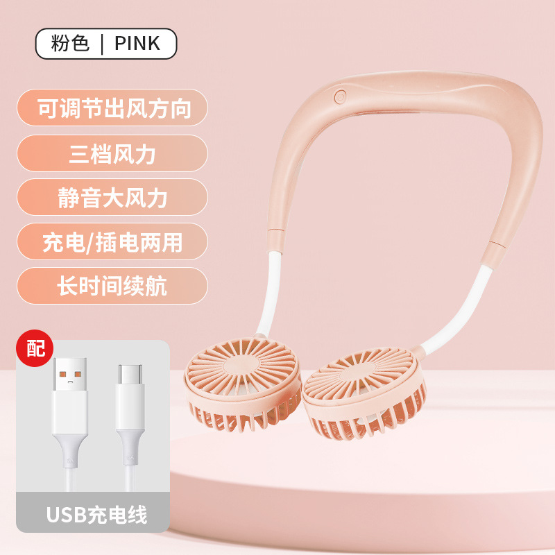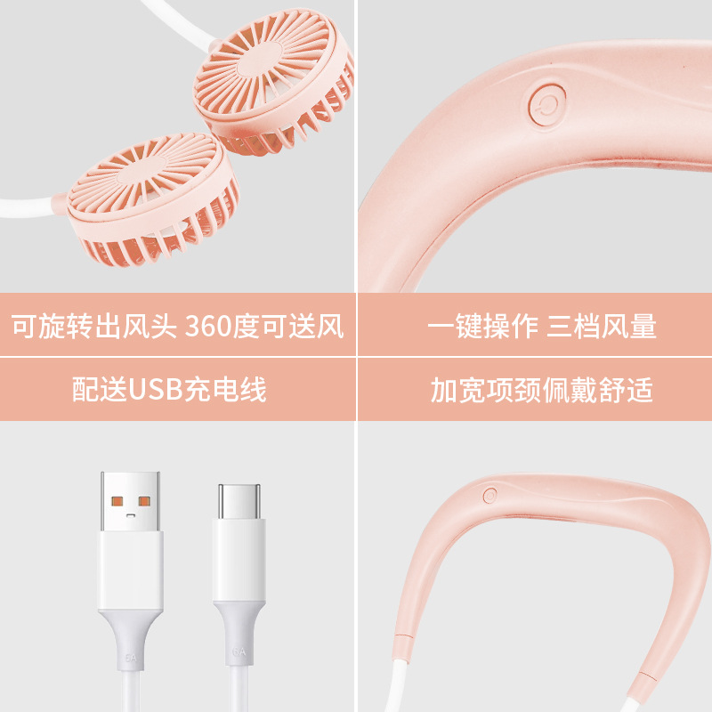 挂脖小风扇USB可充电便携式户外运动随身大风力静音懒人小电风扇