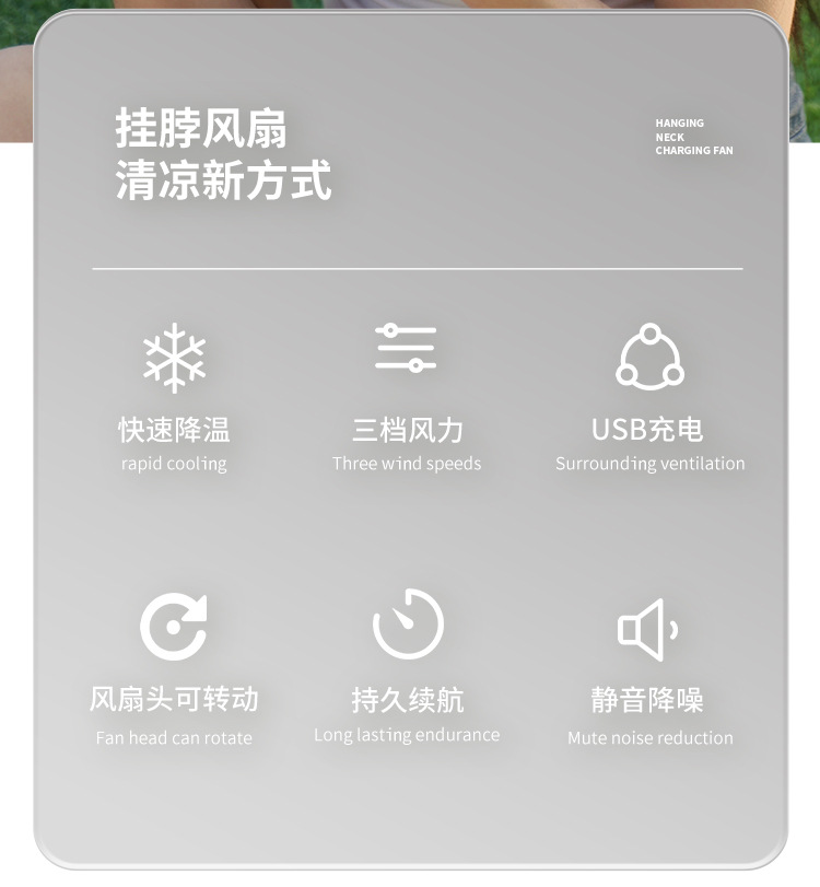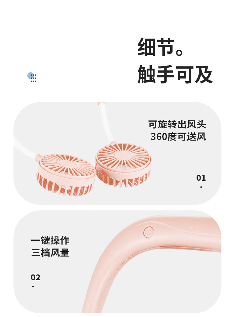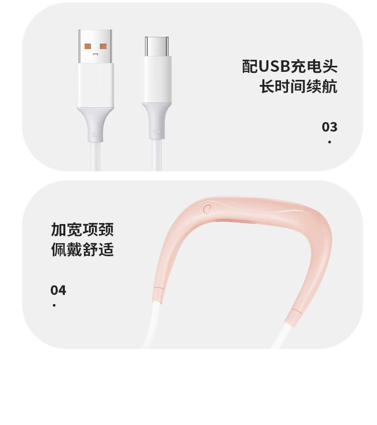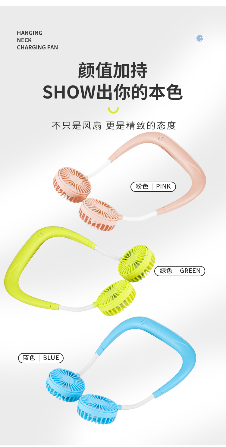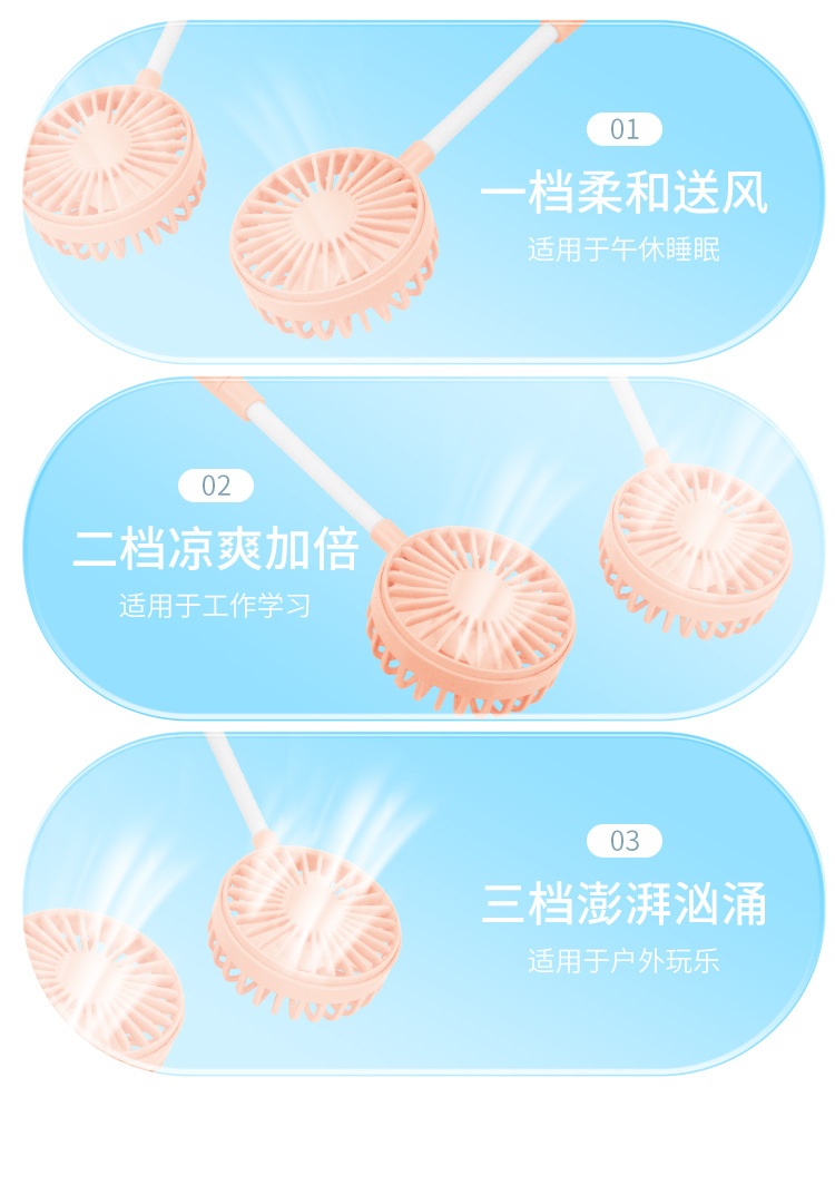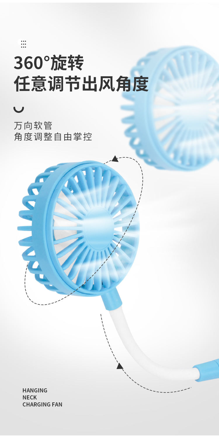 挂脖小风扇USB可充电便携式户外运动随身大风力静音懒人小电风扇 English | 投诉