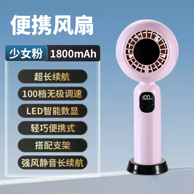 高颜值手持小风扇高速USB风扇数显充电户外便携式桌面迷你电风扇