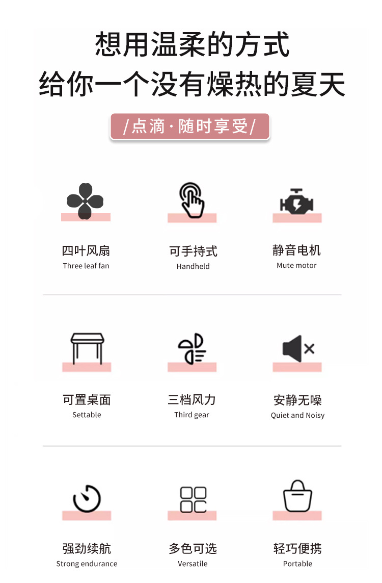 迷你手持小风扇卡通便携式大风力静音学生可充电usb手拿桌面风扇 English | 投诉