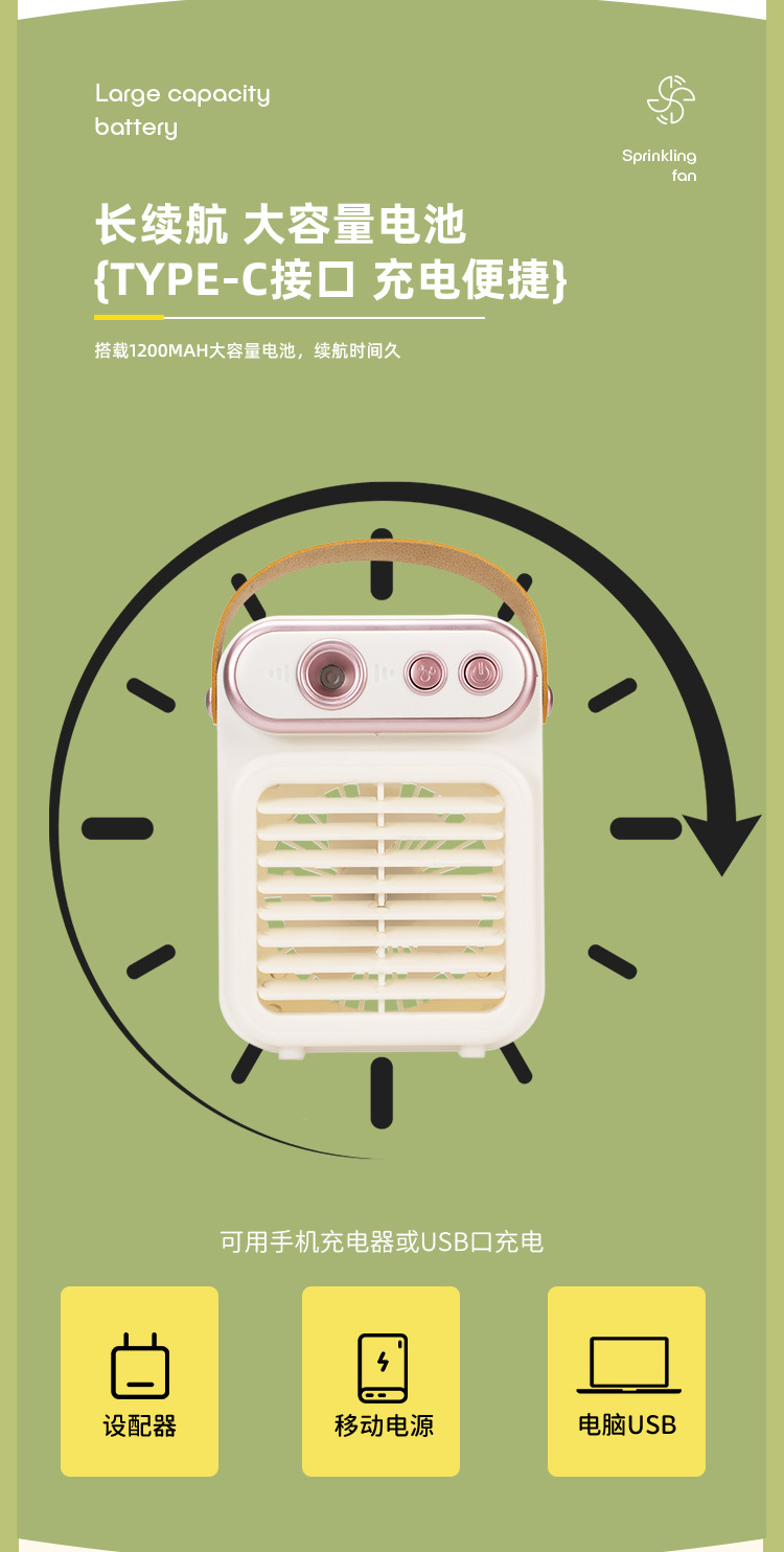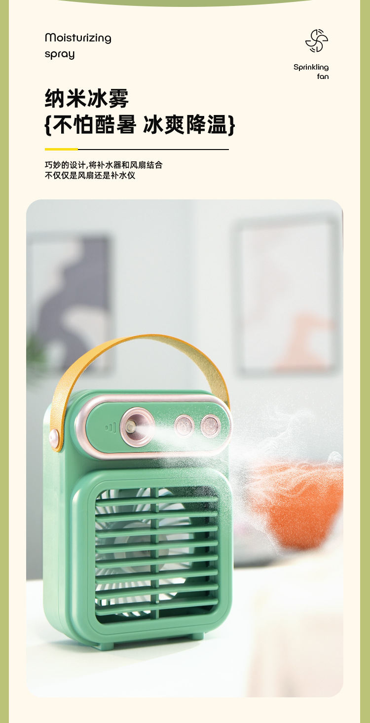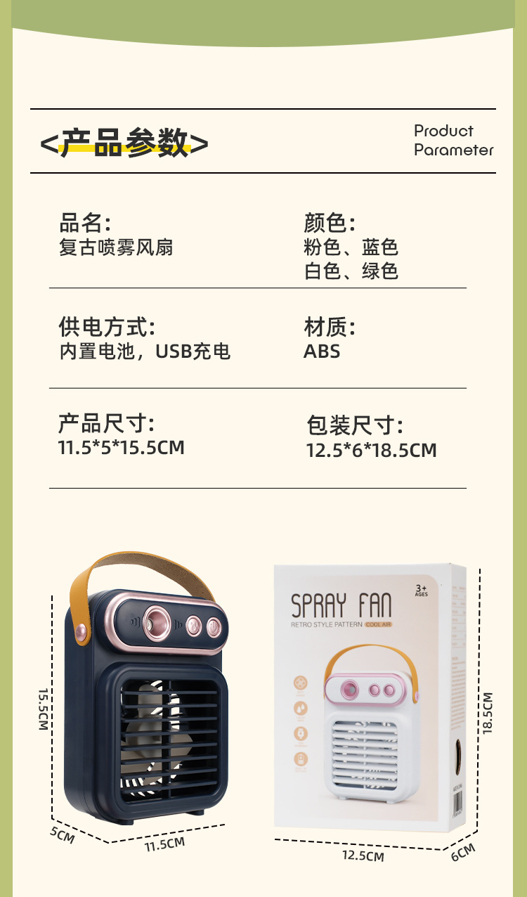 2025新款复古喷雾风扇便携式可充电USB桌面手提式迷你小型电风扇 English | 投诉