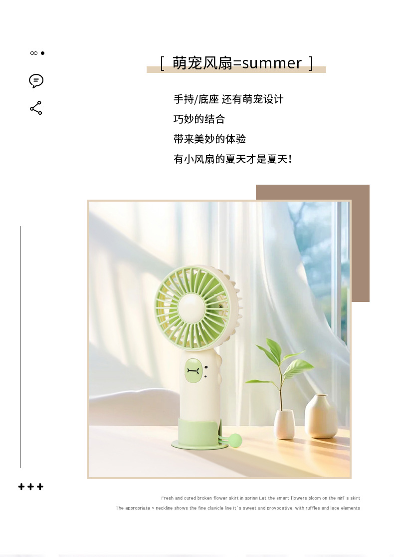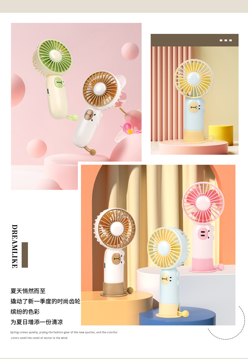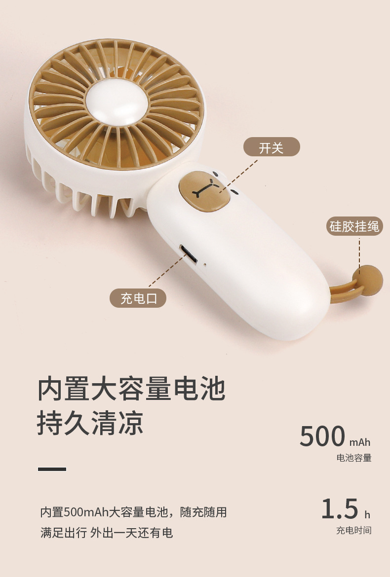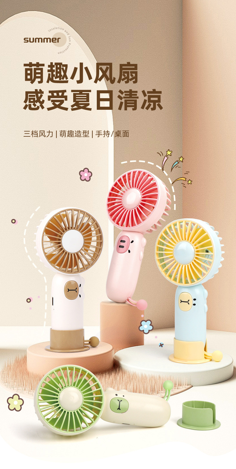 跨境萌宠手持桌面扇学生礼物户外USB风扇可充电便携式迷你电风扇 English | 投诉