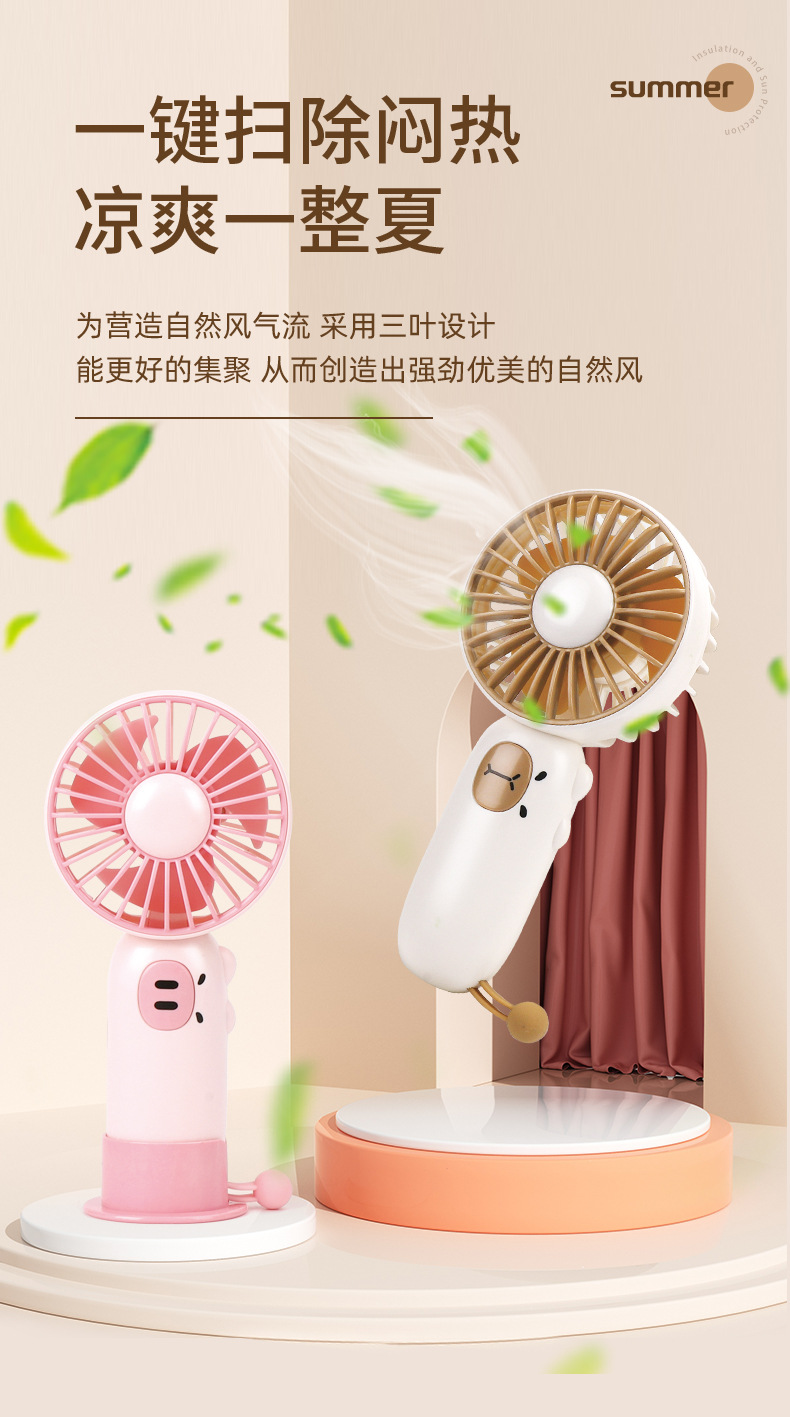 跨境萌宠手持桌面扇学生礼物户外USB风扇可充电便携式迷你电风扇
