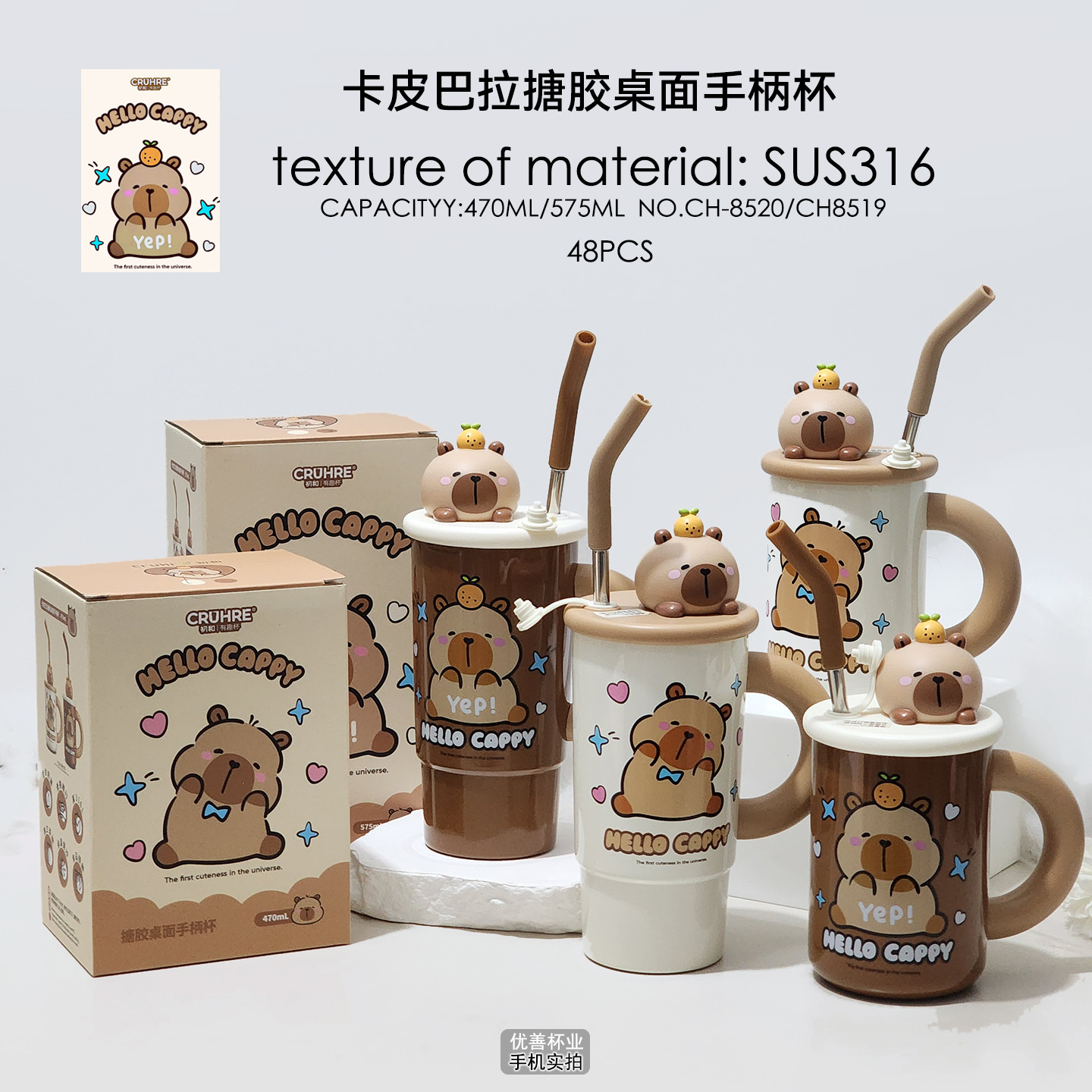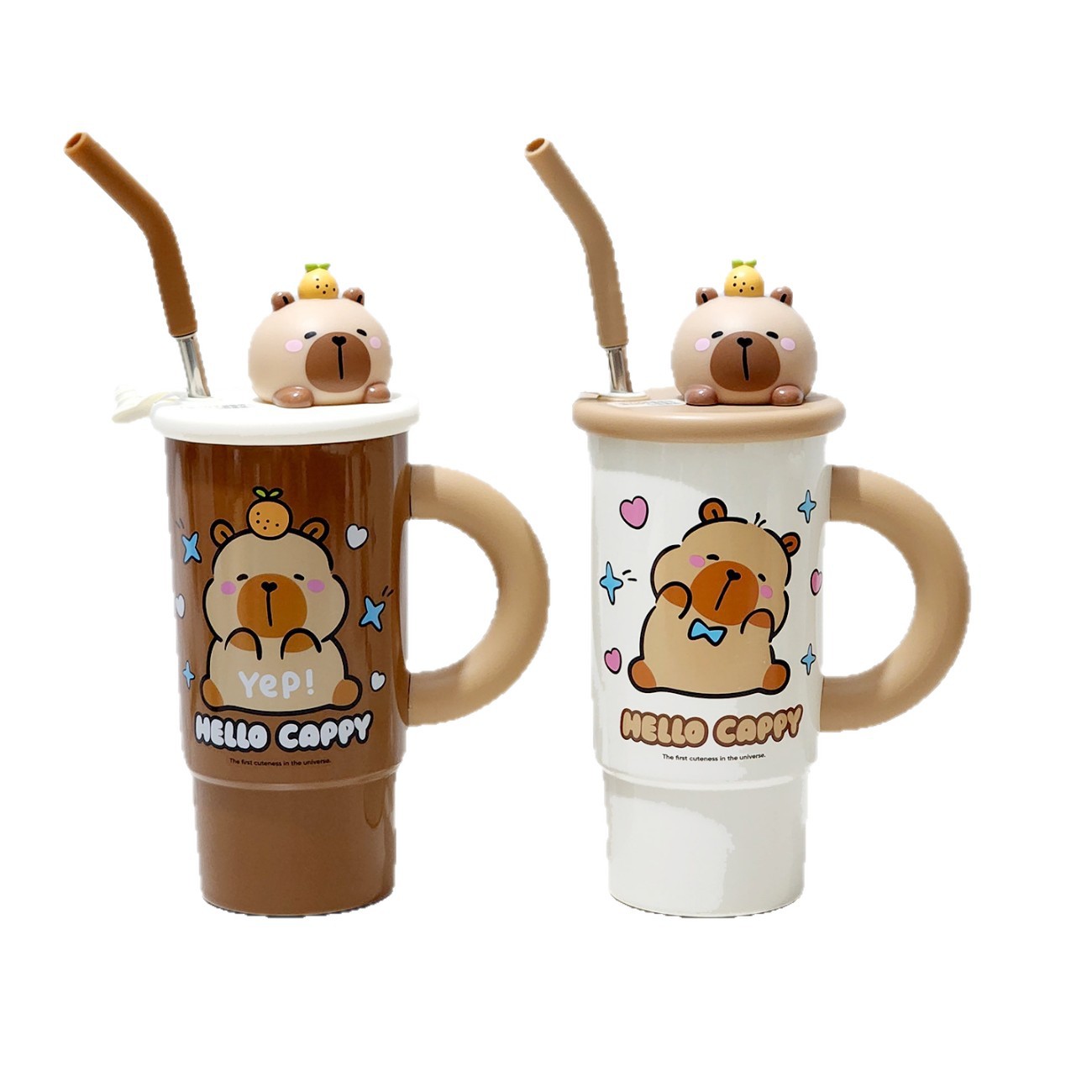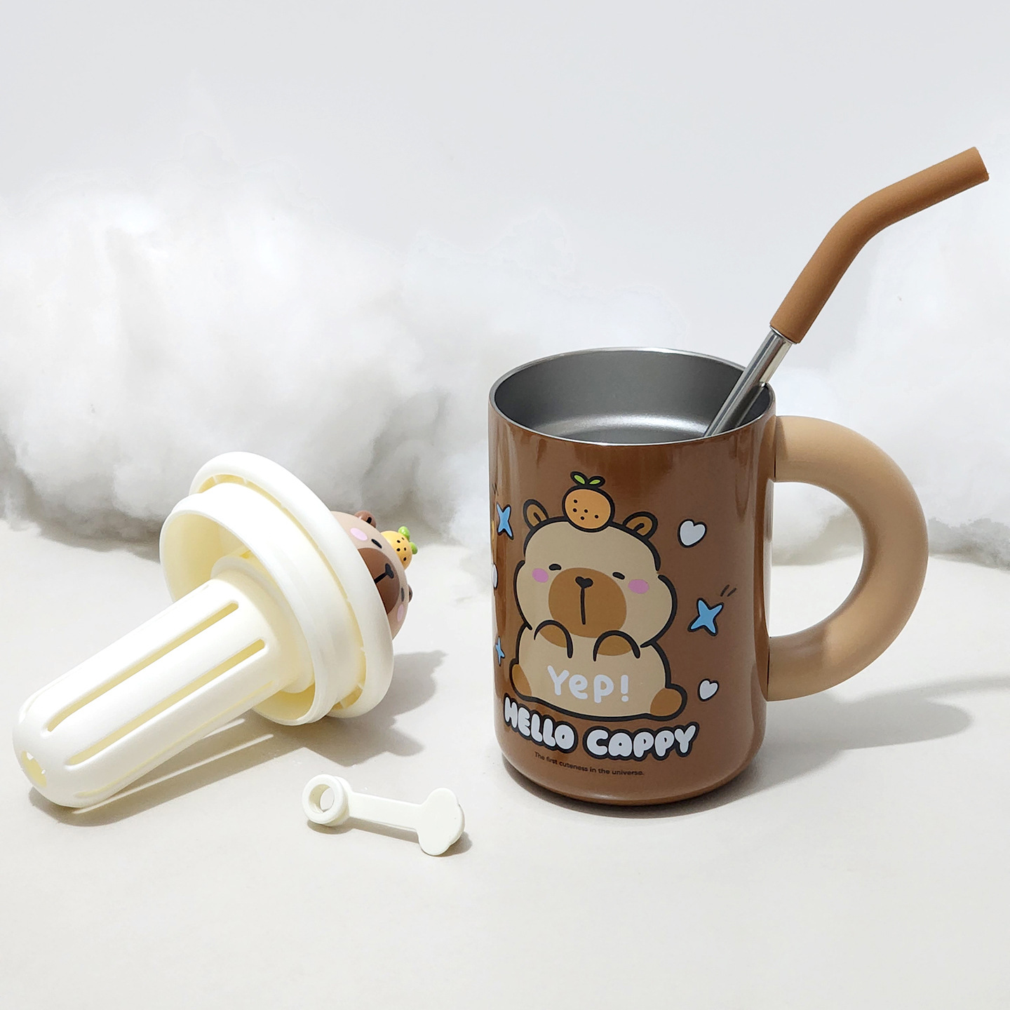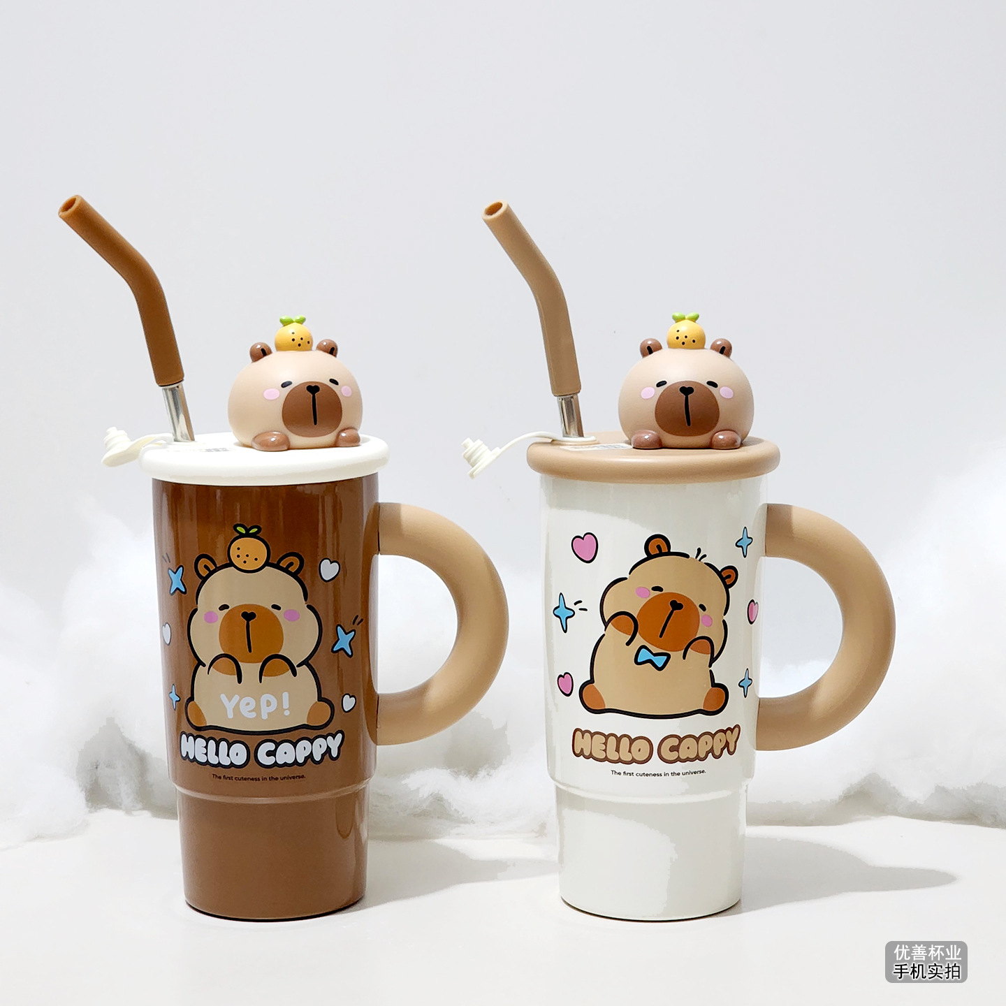 卡皮巴拉保温杯女生搪胶桌面手柄杯办公室水杯大容量咖啡杯带吸管 English | 投诉