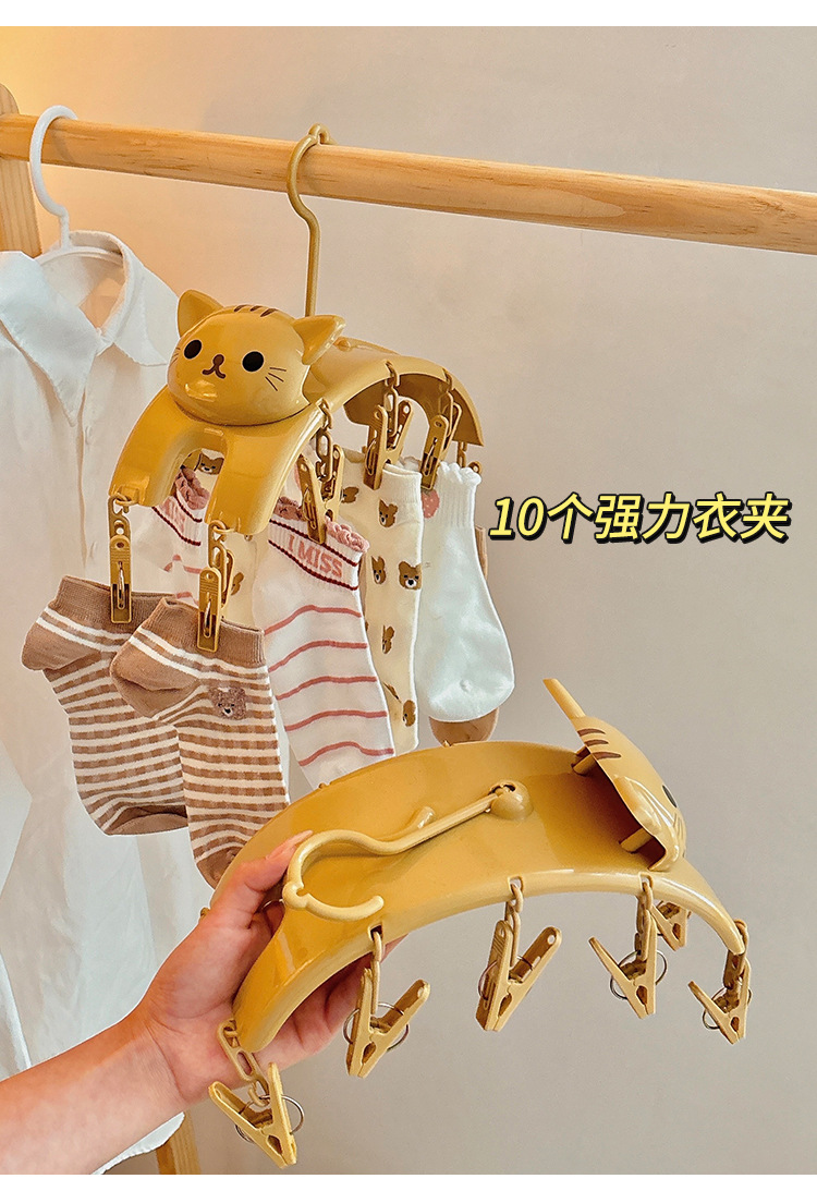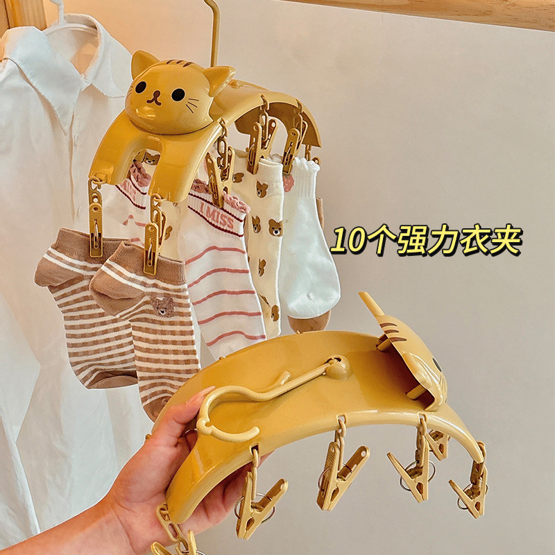卡通家用学生宿舍收纳神器带夹子袜子晾晒架内裤内衣多功能晾衣架