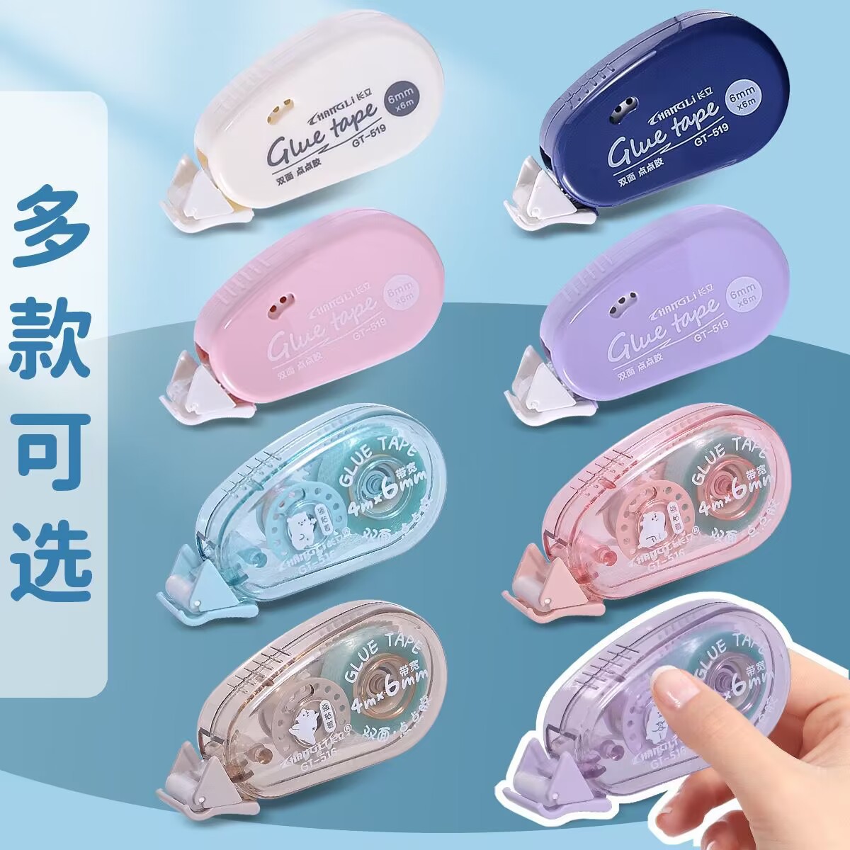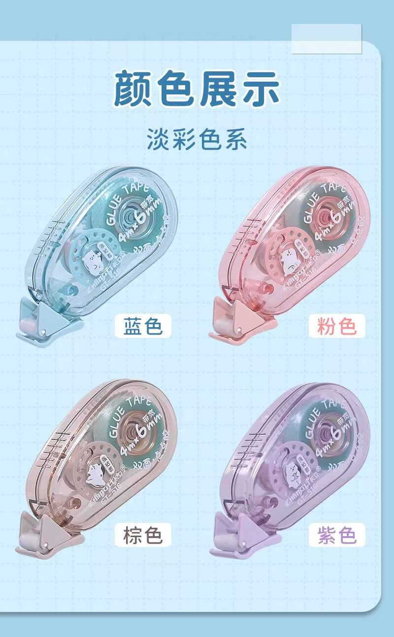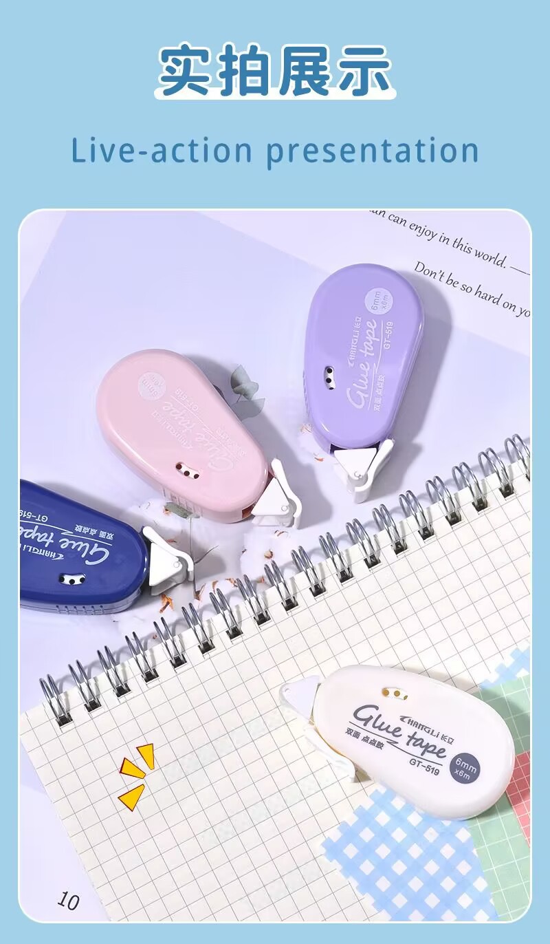 货号: 519 长度: 6M 厚度: 0.2MM 基材: pet 加印LOGO: 可以 宽度: 6MM 类型: 双面胶带 品牌: 长立 适用范围: 学习用品,办公文具 型号: 519 加工定制: 是 是否进口: 否 有可授权的自有品牌: 是 是否跨境出口专供货源: 是 销售方式: 批发零售 规格: 单色随机,紫色,蓝色,粉色,白色 重量: 0.001 kg/个