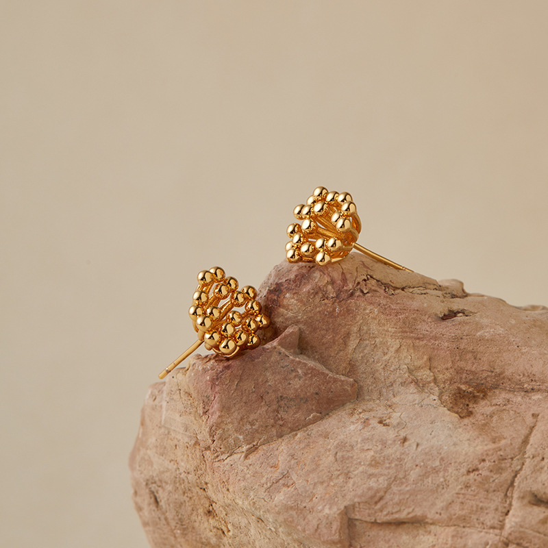 希朗-小花蕊耳钉保色铜镀18K真金chic百搭商务通勤烟花独特设计