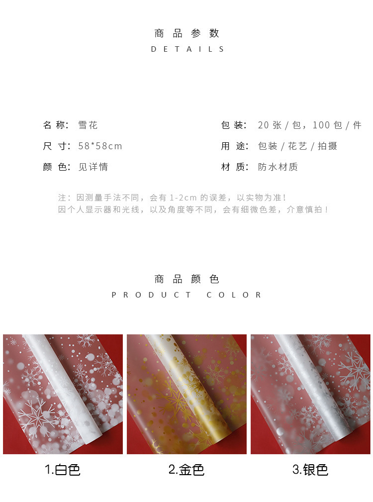 货号: 圣诞包装纸 材质: 其他 颜色: 20张/包57*57CM/雪花+亚红,2 是否专利货源: 否 品牌: WISEPACK 是否IP授权: 否 风格: 欧式 重量: 0.1 kg/包