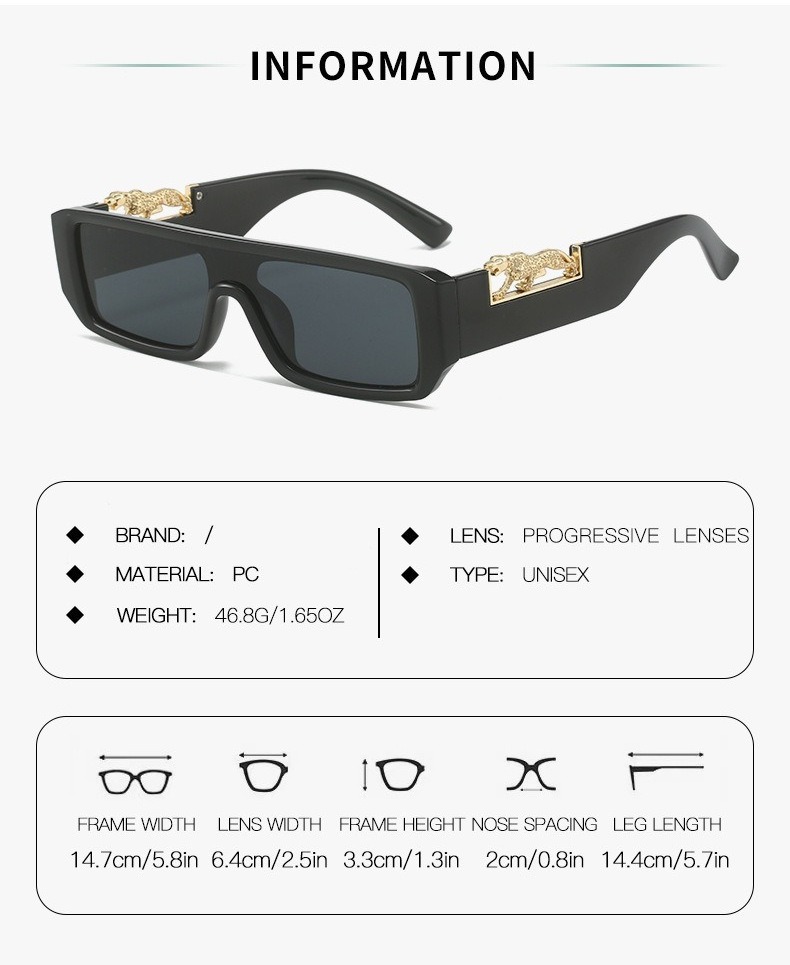 欧美豹子小框墨镜时尚一体方框太阳镜跨境太阳镜凹造型高级感眼镜 English | 投诉