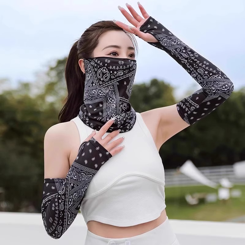 防晒面罩女冰丝挂耳护颈围脖口罩男夏季骑行脸罩脖套户外面纱面巾