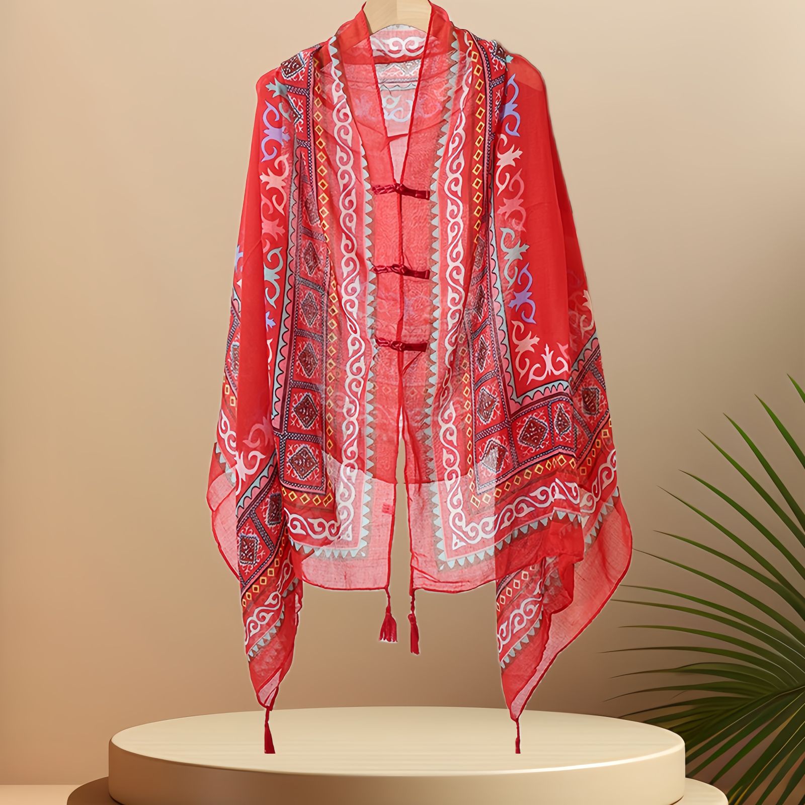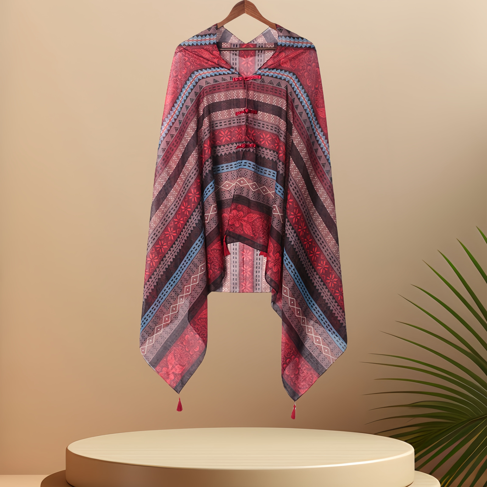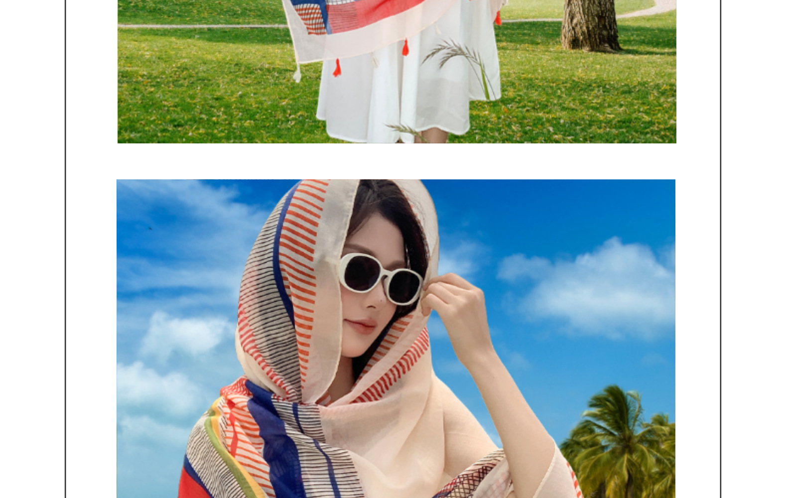 夏季防晒薄款披肩采色条纹盘扣挂须民族风旅游穿搭丝巾沙滩纱巾女 English | 投诉