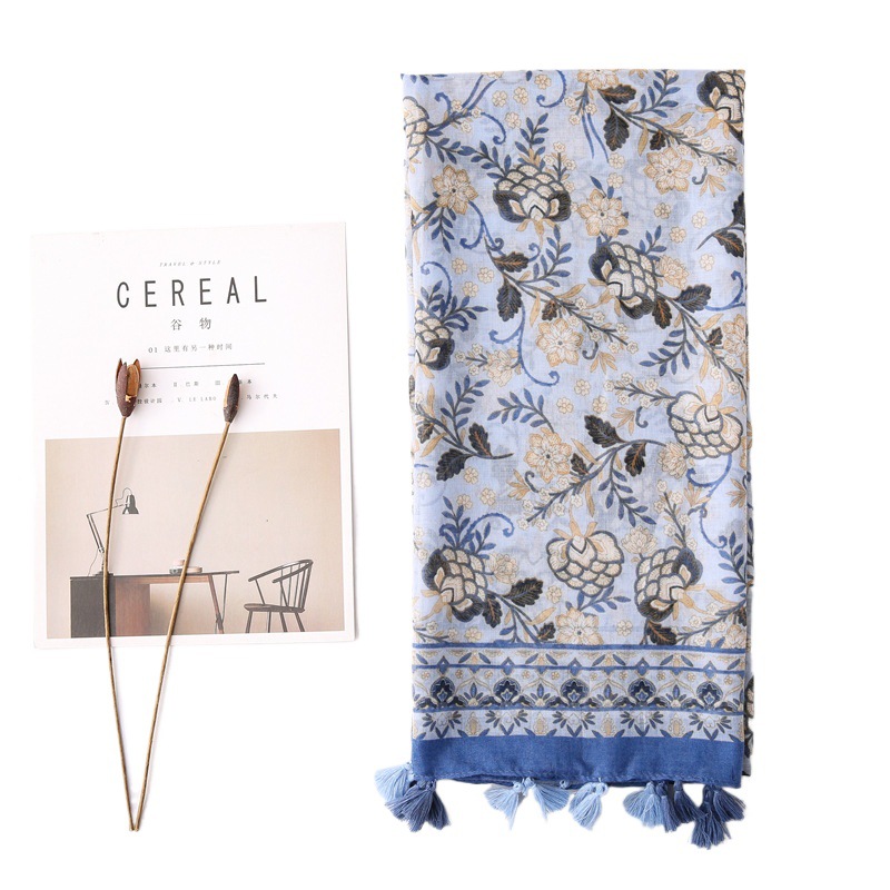 韩国外贸围巾秋冬复古棉麻创意花朵百搭民族风旅游防晒披肩丝巾女 English | 投诉