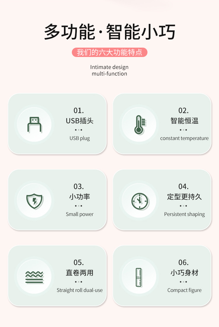 迷你卷发棒宿舍小功率usb夹板蓬松刘海随身便携直发卷发两用神器