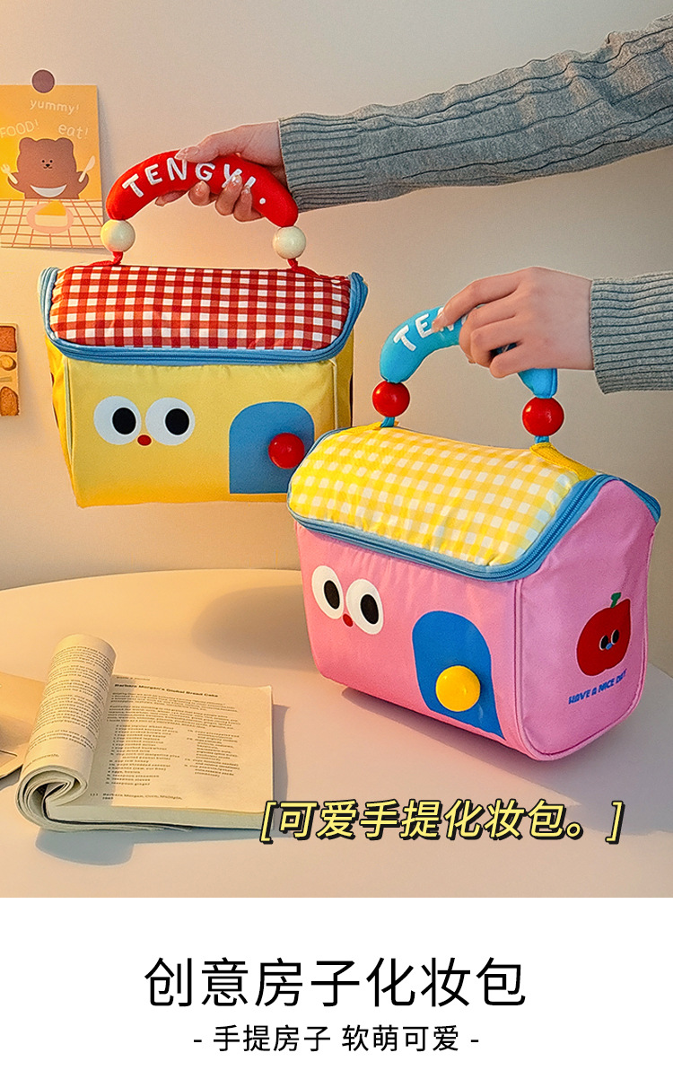 2025新款大容量手提收纳包外出便携化妆品收纳多巴胺小屋化妆包女 投诉