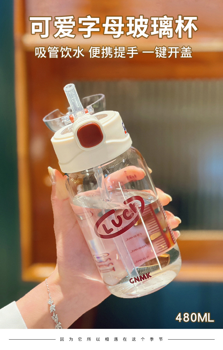 水杯吸管杯2024新款女杯子玻璃杯高颜值带刻度孕妇产妇专用耐高温