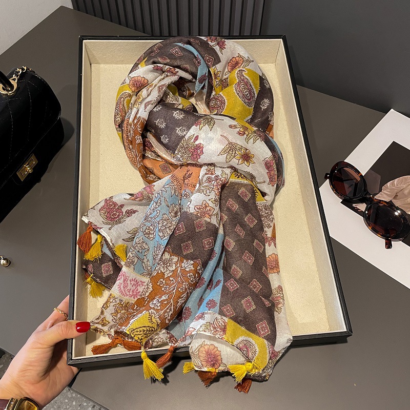 围巾巴厘纱丝巾春夏小清新波西米亚异域民族风麦穗花卉流苏披肩女 English | 投诉