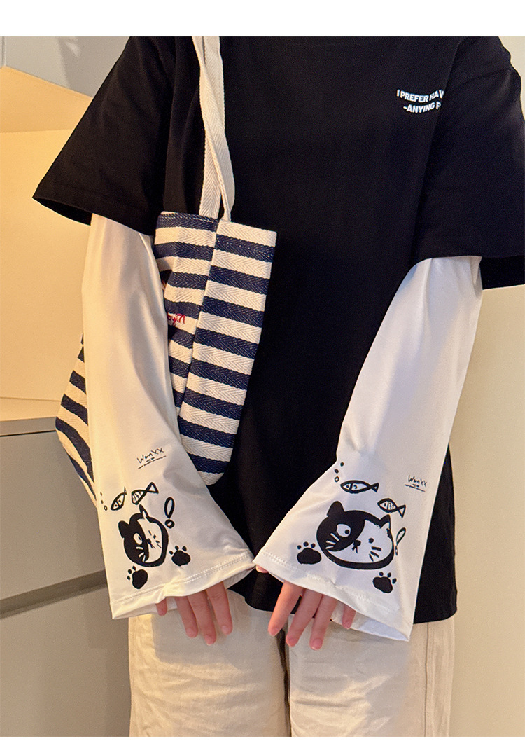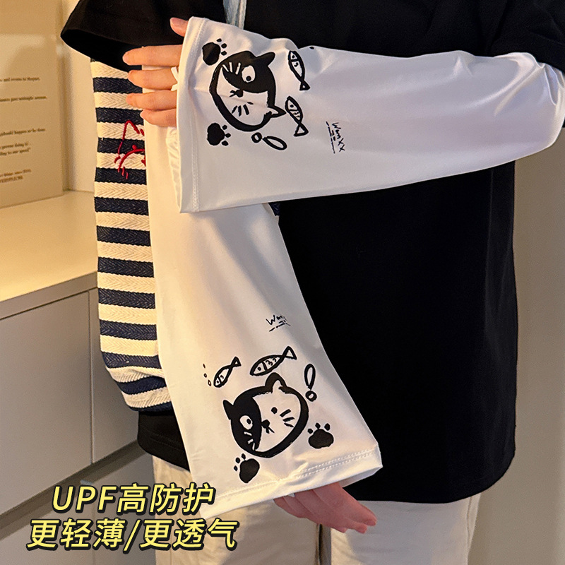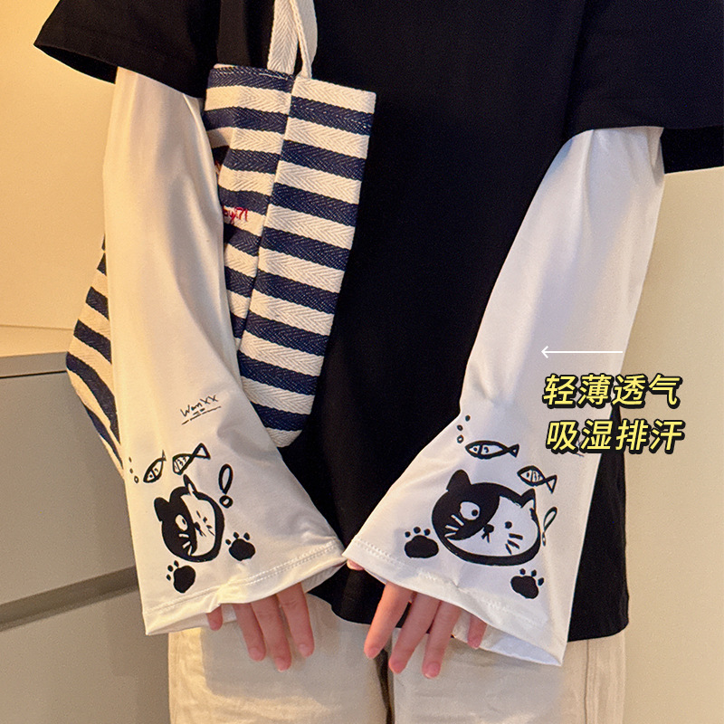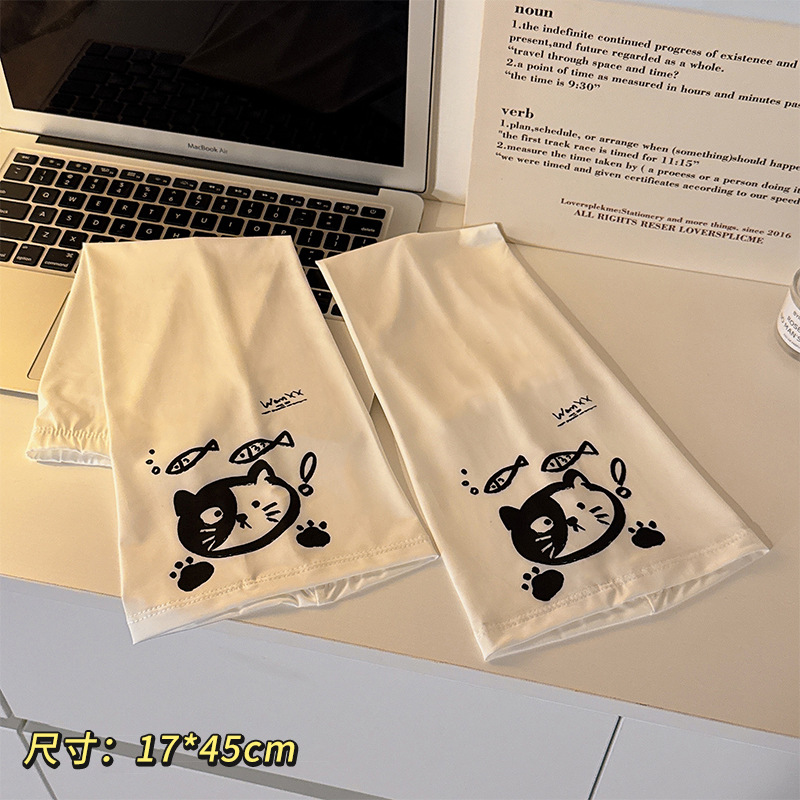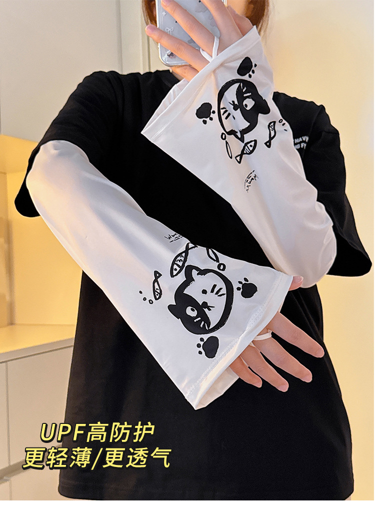 2025新款夏学生宽松薄款可爱卡通防紫外线冰丝套袖冰袖女防晒袖套