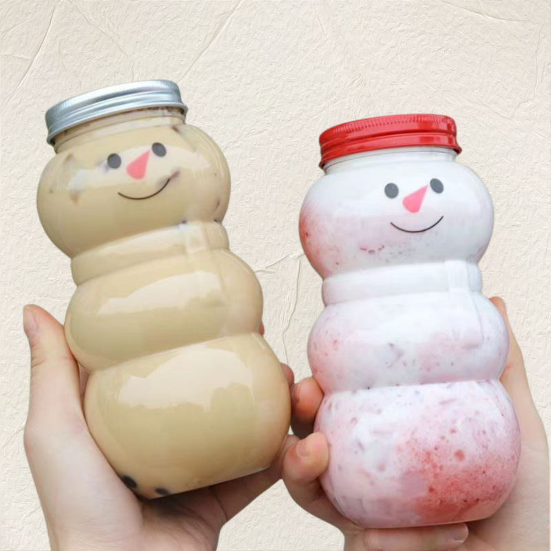 可爱圣诞雪人 网红透明奶茶杯 冷饮杯 卡通奶茶杯食品级饮料瓶 English | 投诉