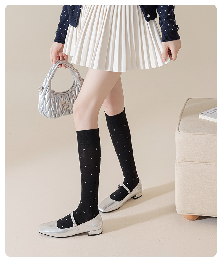 小腿袜子女夏薄款长筒jk袜女士芭蕾风波点简约学院风显瘦无骨女袜 English | 投诉