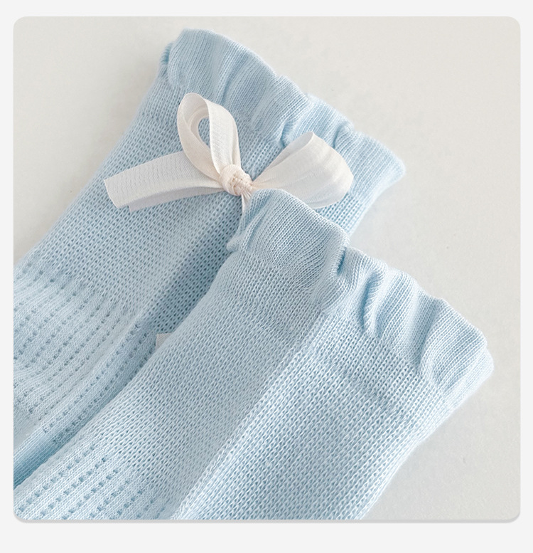 花边袜子女春夏季网眼透气薄款棉蝴蝶结日系Jk中筒袜春夏堆堆袜