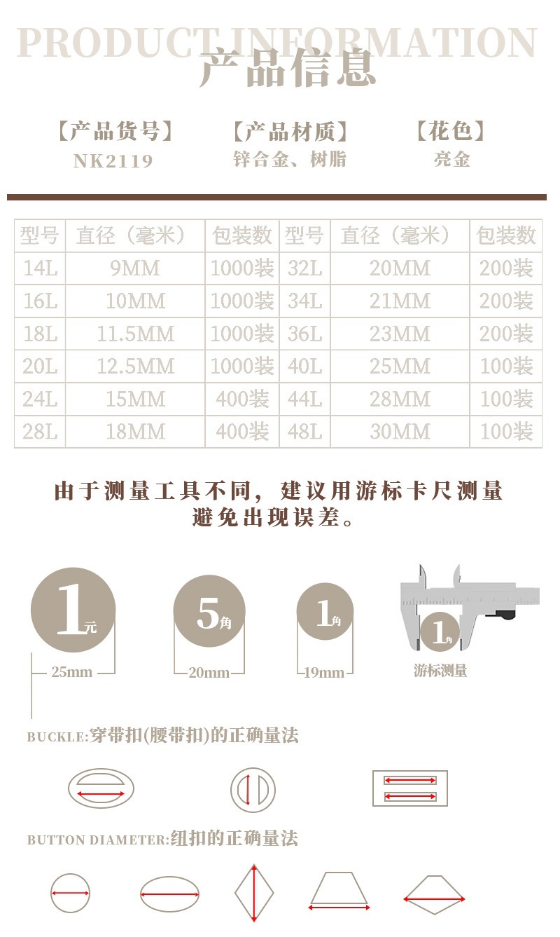 品牌: JIFA 风格: 小香风 货号: NK2119 材质: 合金 适用范围: 风衣,棉衣,外套,毛呢大衣 品名: 金属脚扣 重量: 0.003 kg/粒