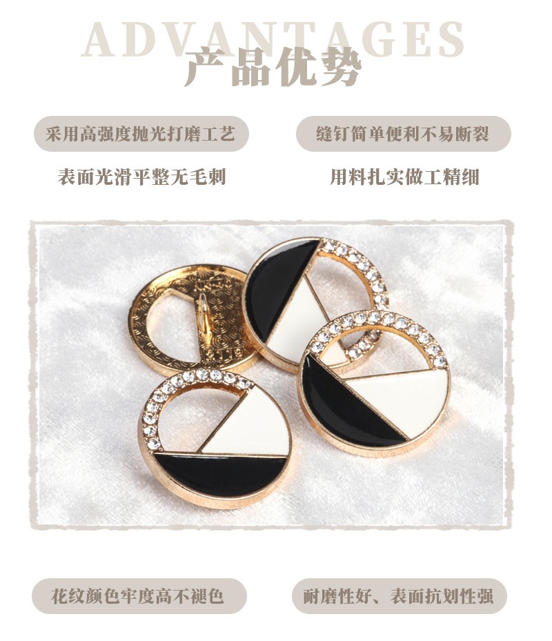 小香风金属镶钻高档纽扣大衣风衣外套开衫纽扣高脚手缝点油钮扣 English | 投诉