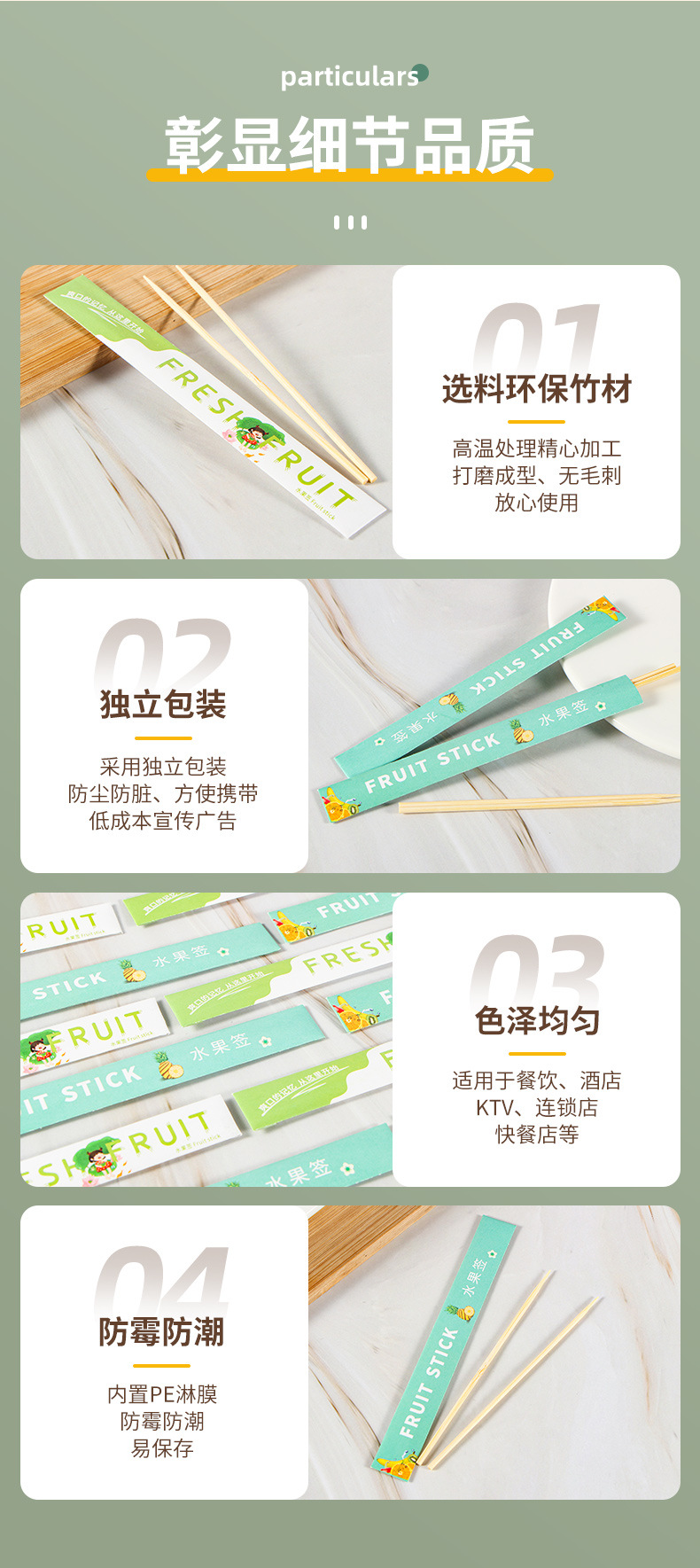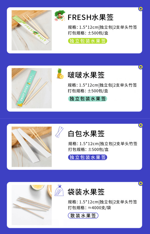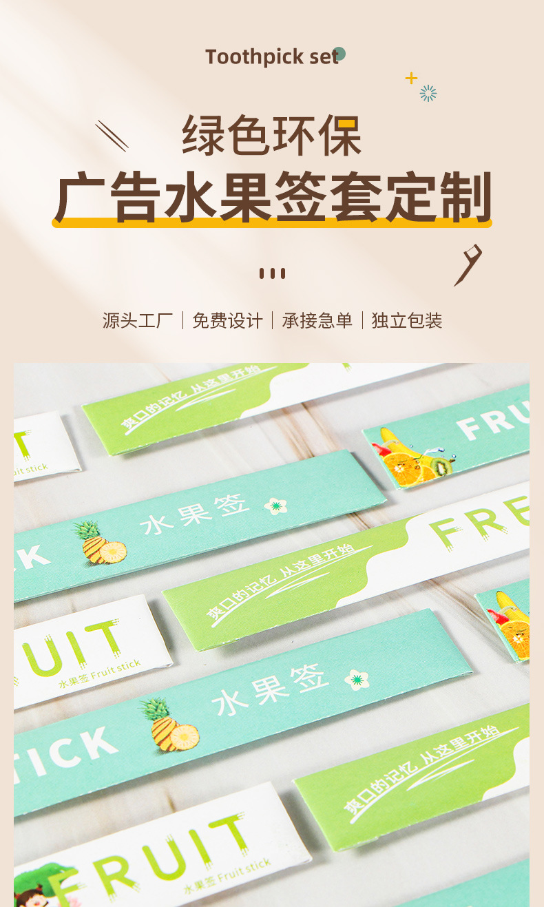 独立包装水果签牙签10cm三明治汉堡水果插签外卖筷子餐具竹签包装 English | 投诉