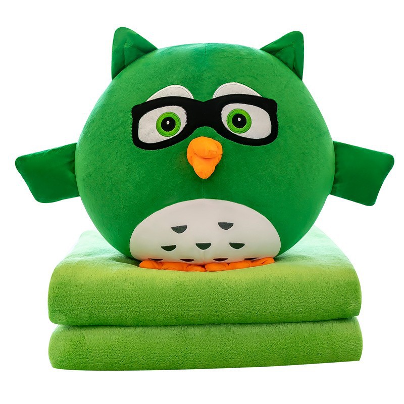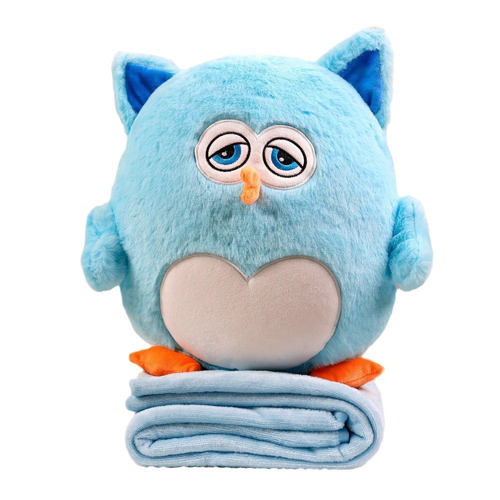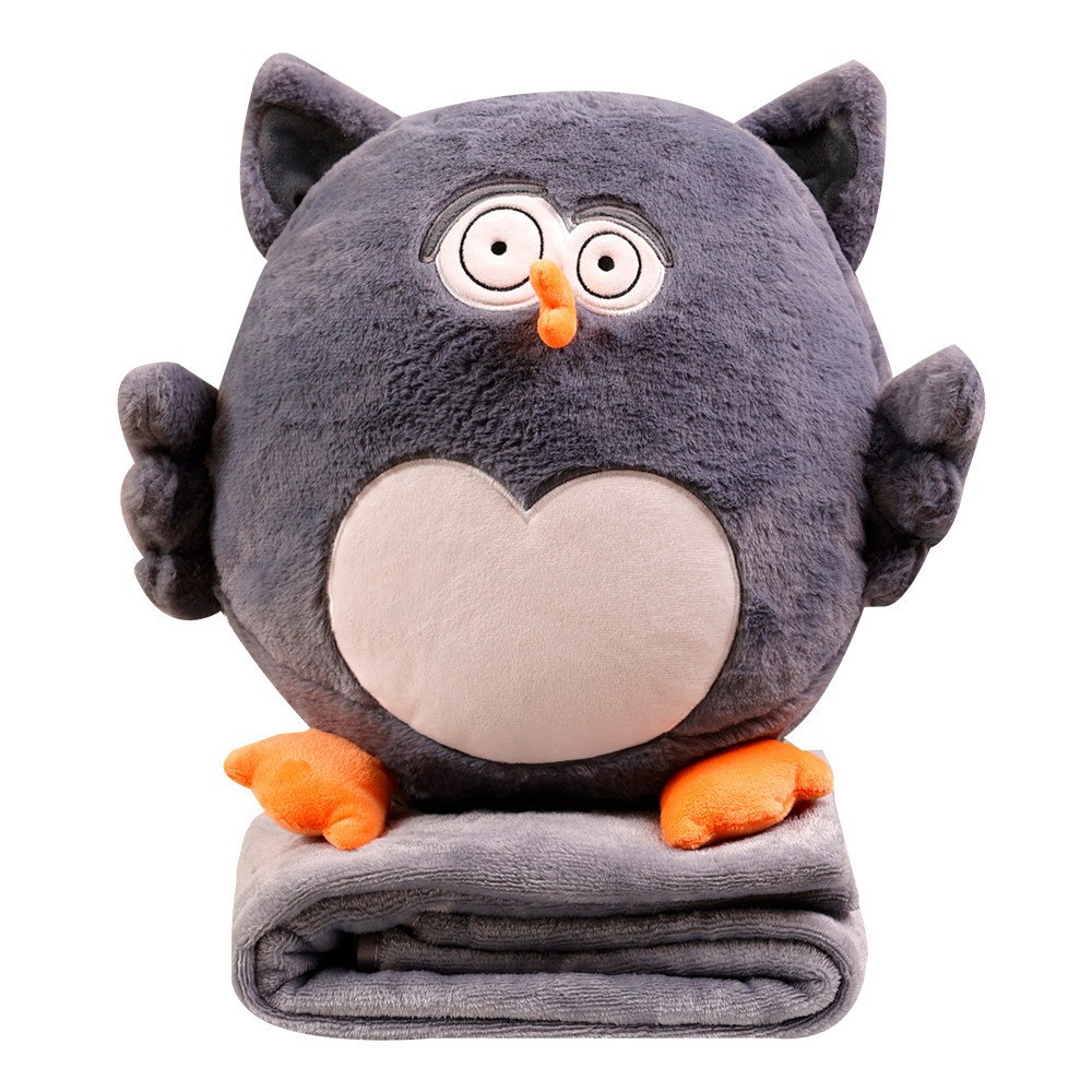 跨境新款猫头鹰抱枕公仔毯子二合一毛绒玩具背部拉链拆洗沙发靠垫