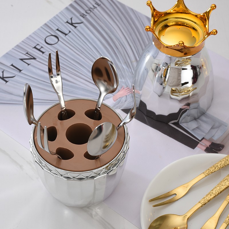跨境不锈钢小皇冠心境蛋叉勺6件套餐具礼盒套装