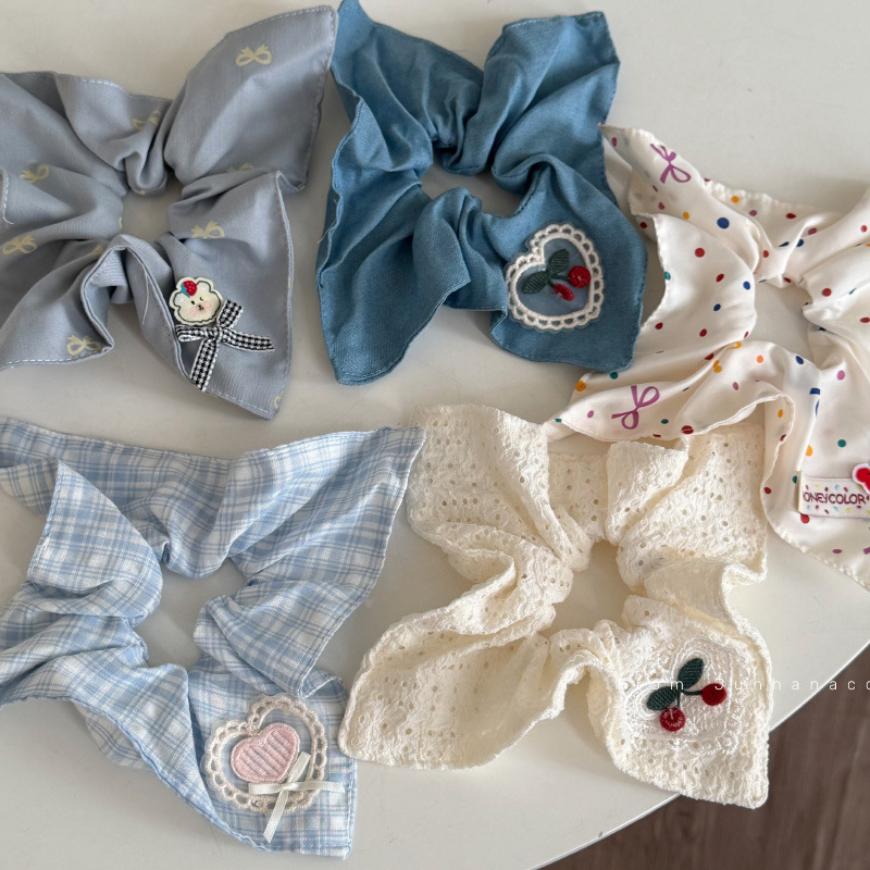 蓝色小号方巾发圈蝴蝶结大肠发圈女童新款扎马尾发绳女丸子头头饰