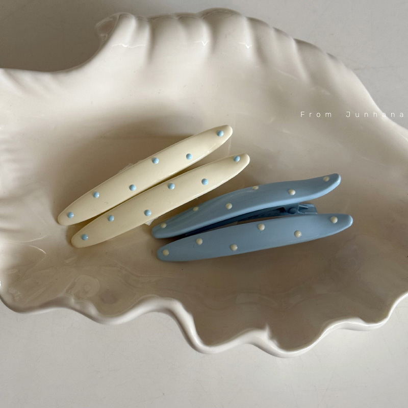 蓝白波点奶油色发夹滴油鸭嘴夹韩版少女风时尚边夹发夹刘海夹发卡 投诉