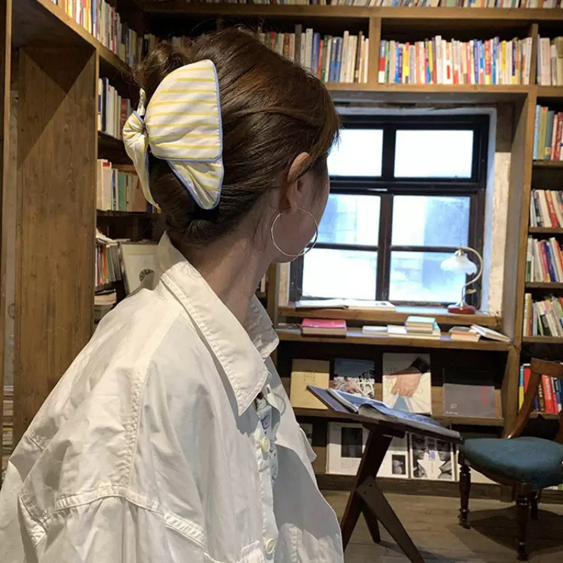 黄白条纹简约三角抓夹大肠发圈高级感发夹气质韩版发饰头饰鲨鱼夹
